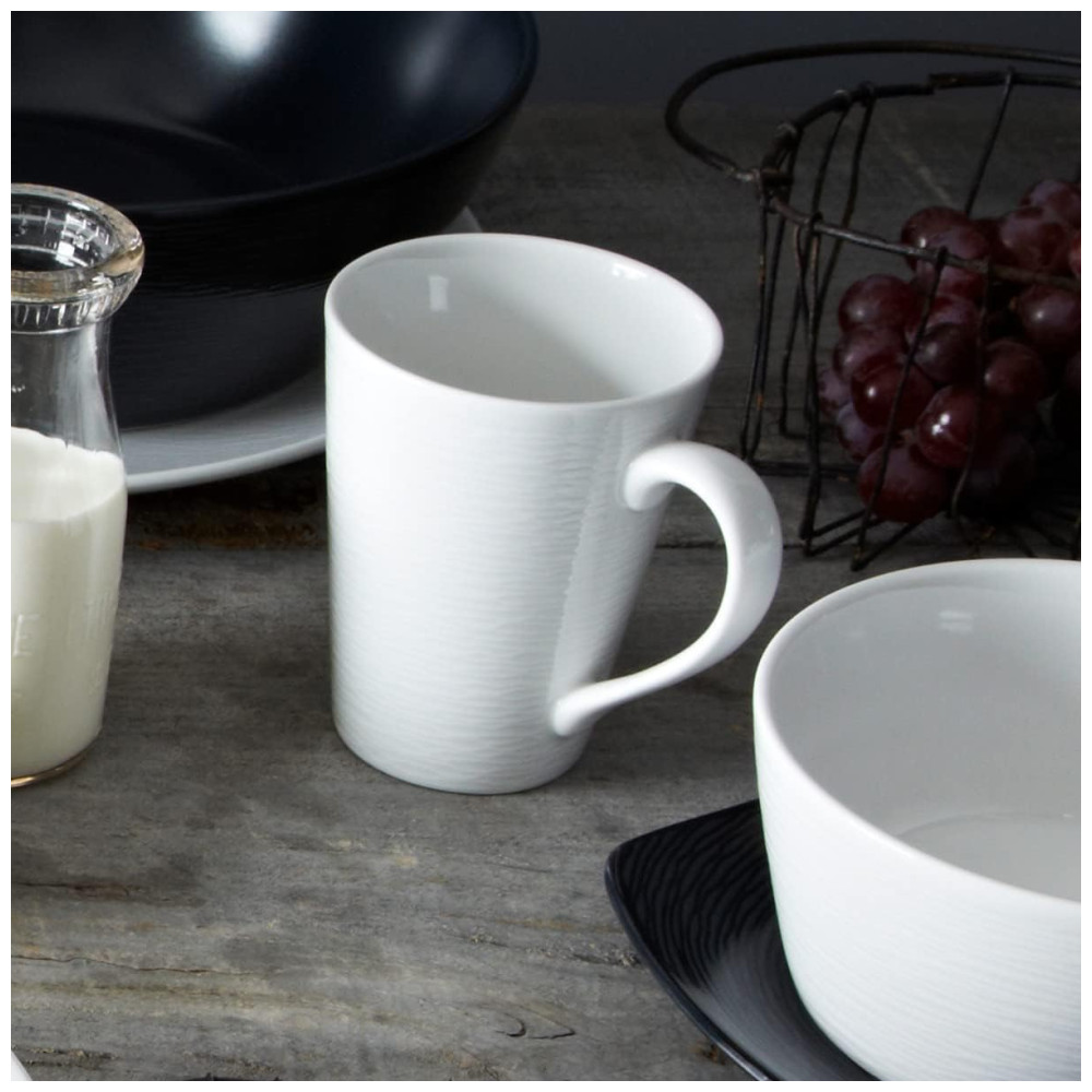 O conjunto inclui 4 peças de cada: pratos de jantar de 27,94 cm, pratos de salada/sobremesa de 20,96 cm, tigelas de sopa/cereal de 19,69 cm e canecas de 355 ml, proporcionando uma solução completa para suas refeições. Feito com porcelana durável, este conjunto é ideal tanto para entretenimento quanto para o uso diário, garantindo resistência e estilo em cada ocasião.