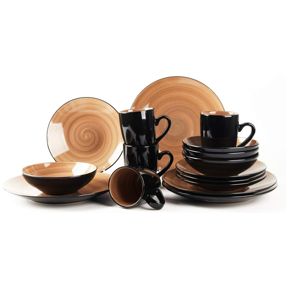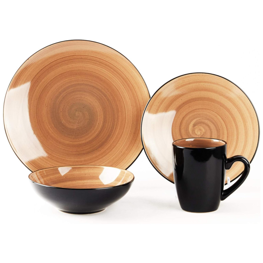 Aparelho de Jantar em Louça de Pedra Sonoma 16 Peças Mocha com Lavagem em Espiral Preto 16 PeçasHomeVss