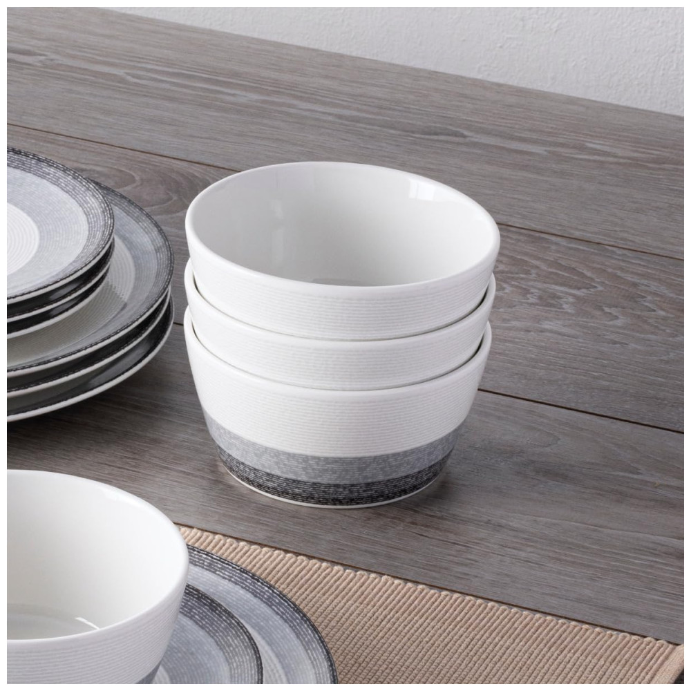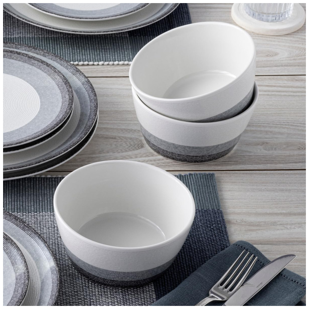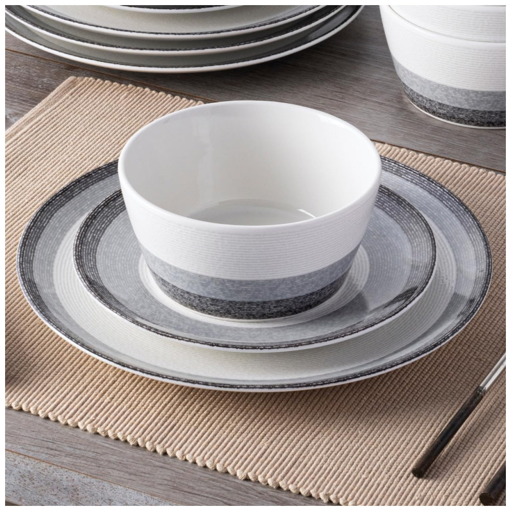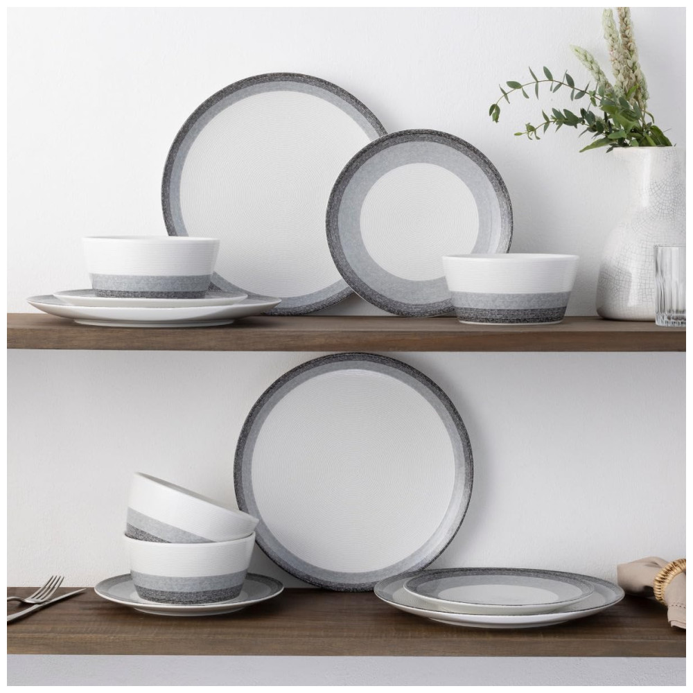 Aparelho de Jantar para Todas as Ocasiões com 12 Peças Formato Redondo e Material de Porcelana Noritake G038-12E Cinza e Branco