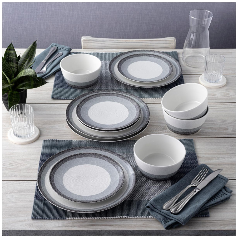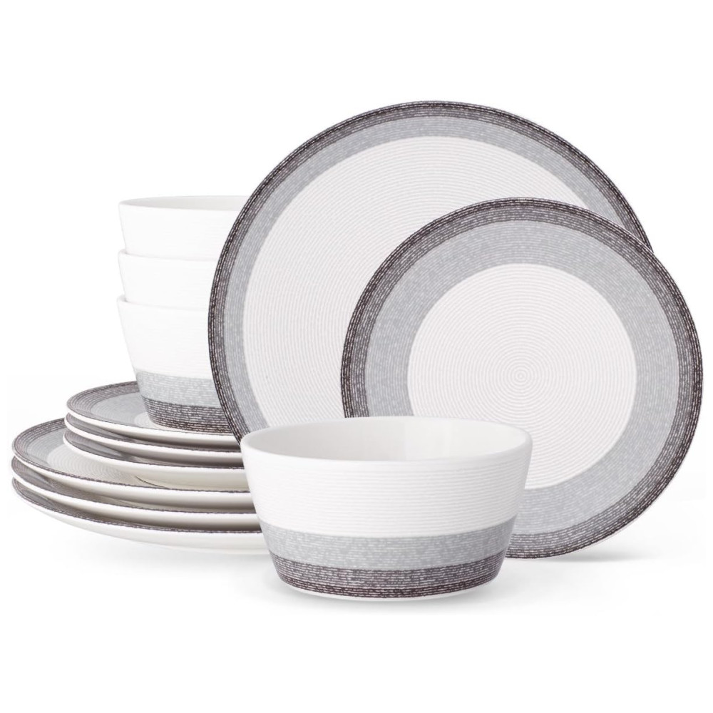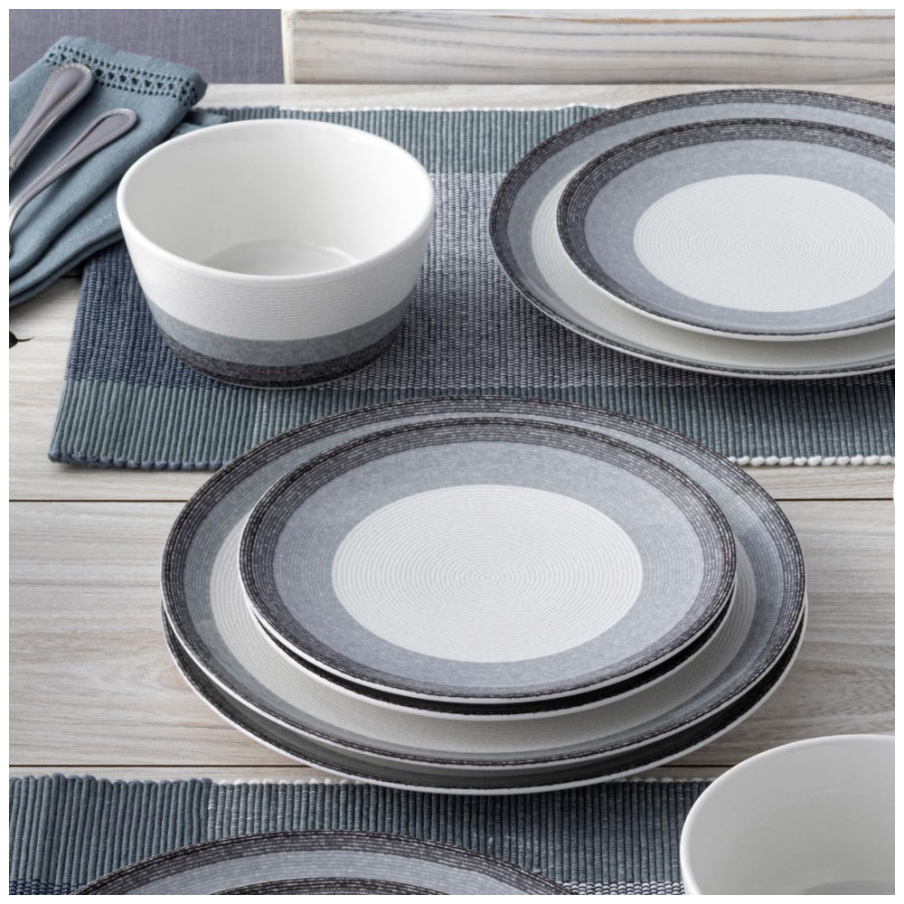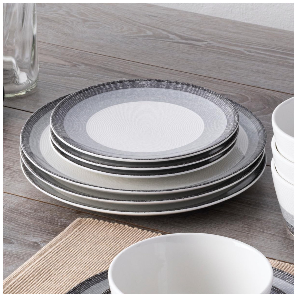 Aparelho de Jantar para Todas as Ocasiões com 12 Peças Formato Redondo e Material de Porcelana Noritake G038-12E Cinza e Branco