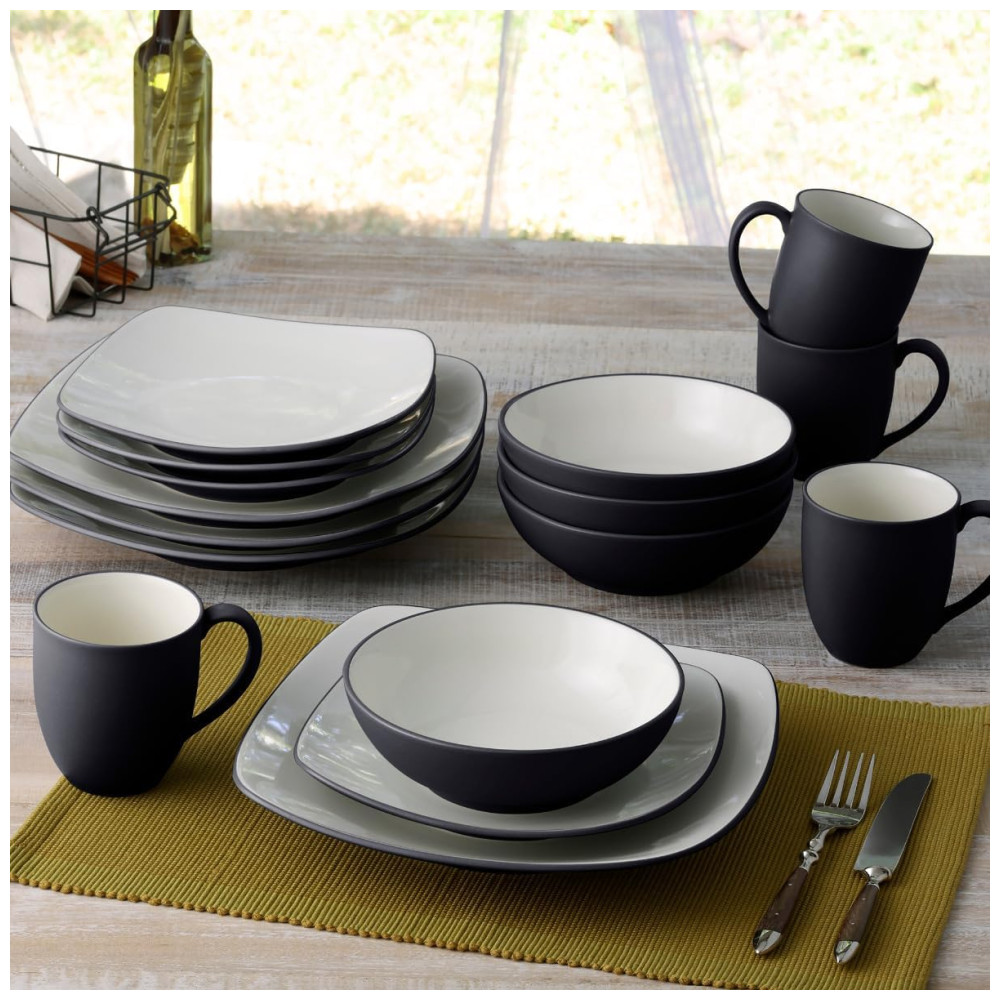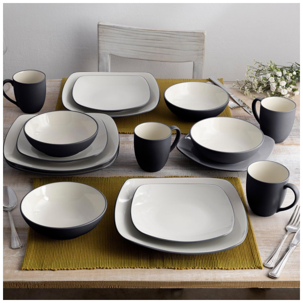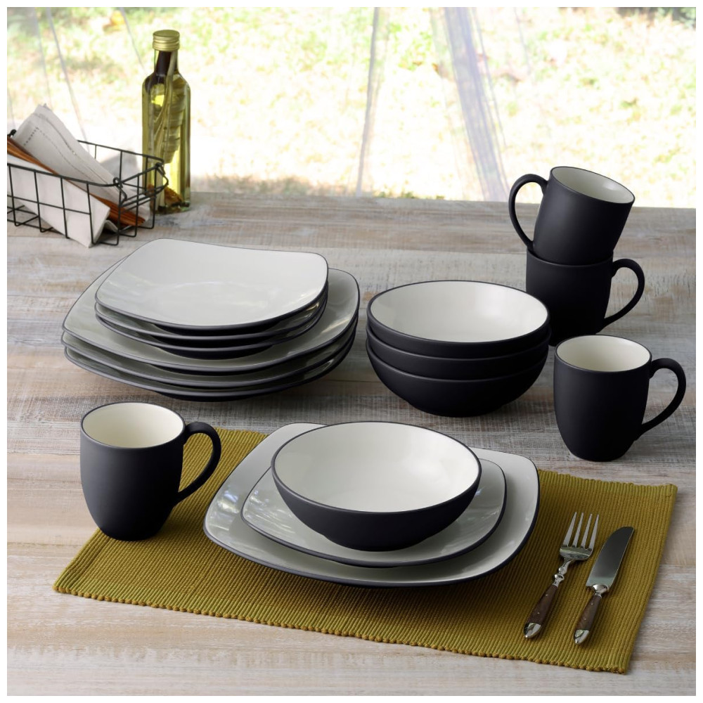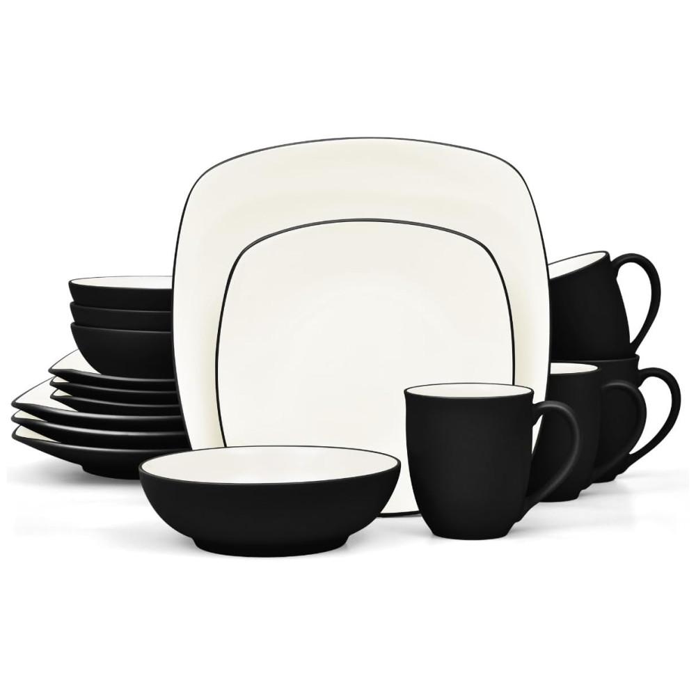 Aparelho de Jantar para Todas as Ocasiões com 16 Peças Formato Quadrado e Material de Cerâmica Noritake Preto