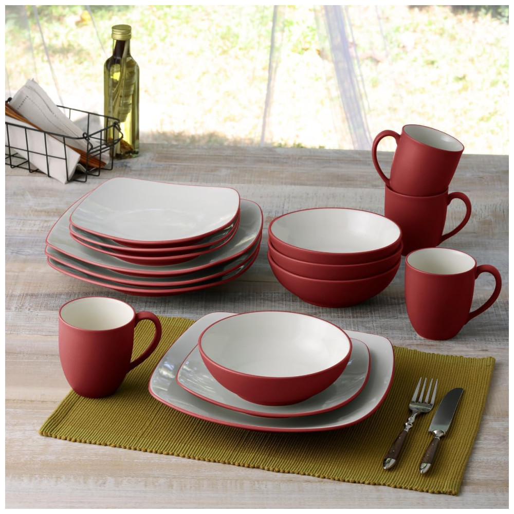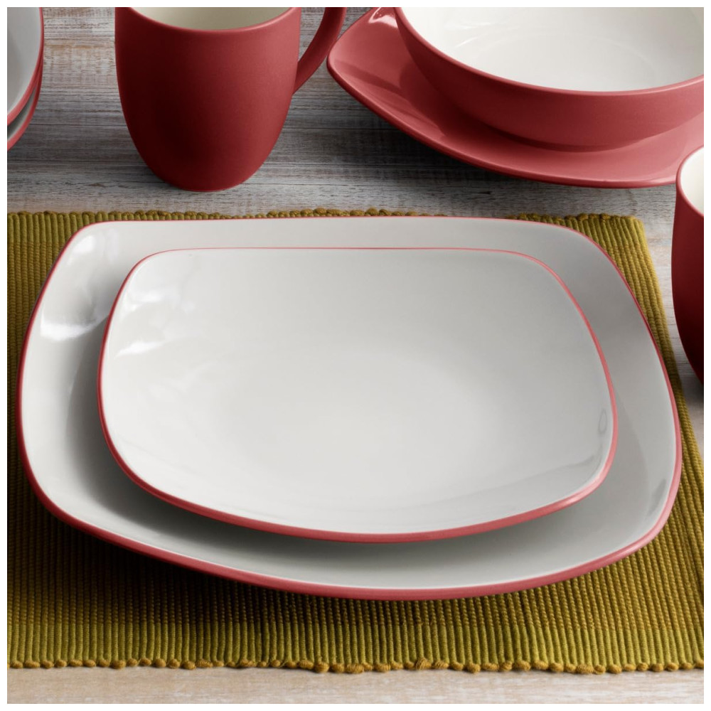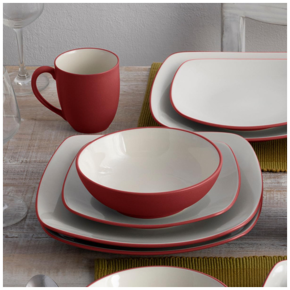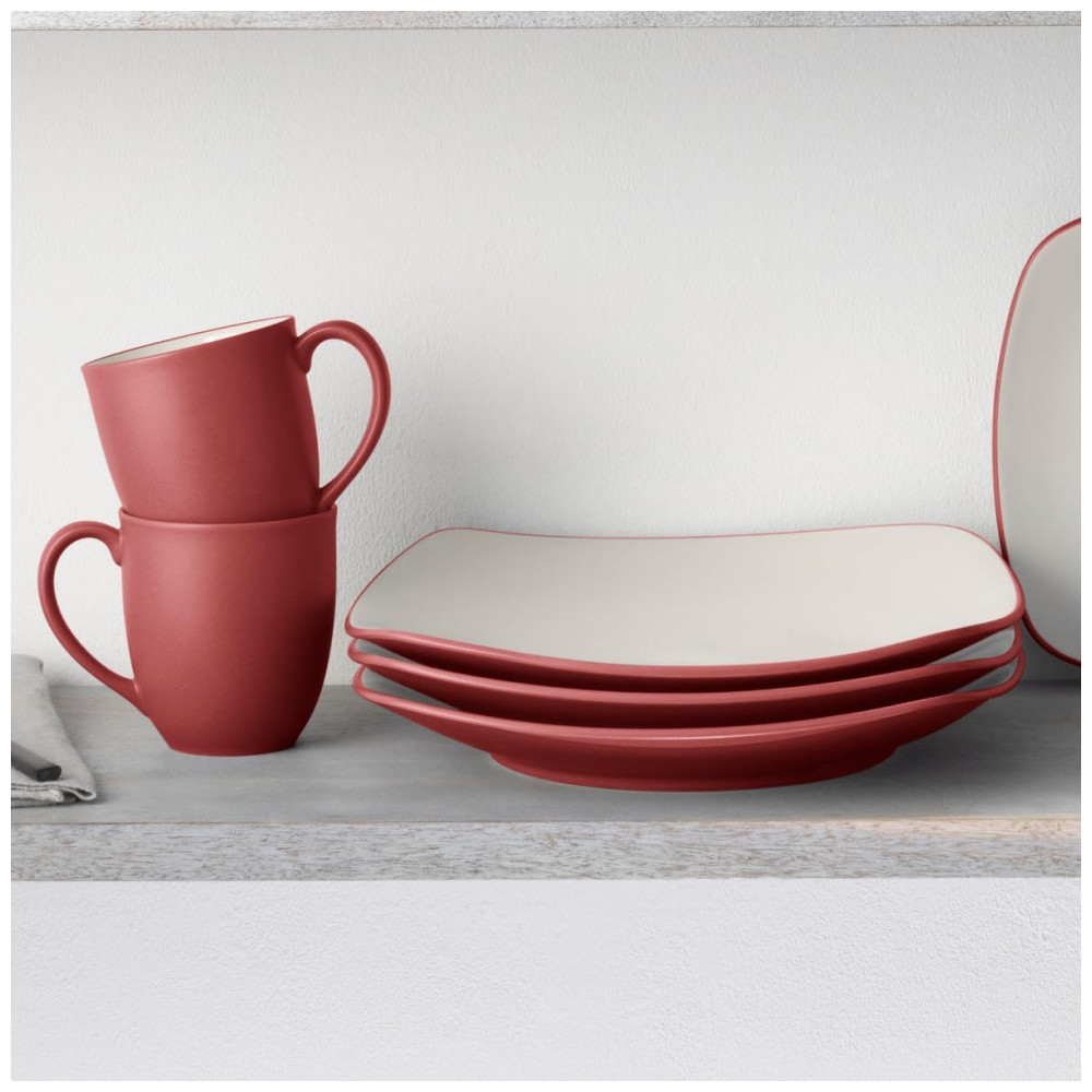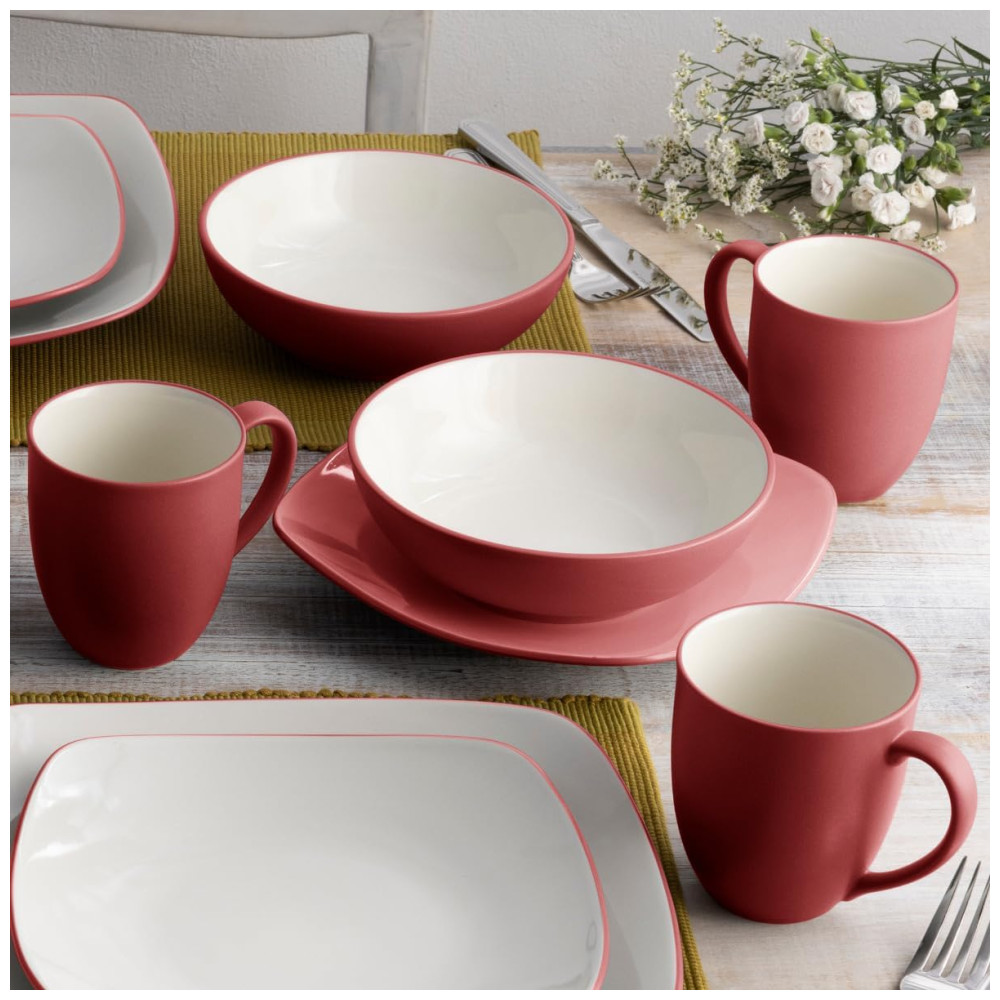 Aparelho de Jantar para Todas as Ocasiões com 16 Peças Formato Quadrado e Material de Cerâmica Noritake Vermelho