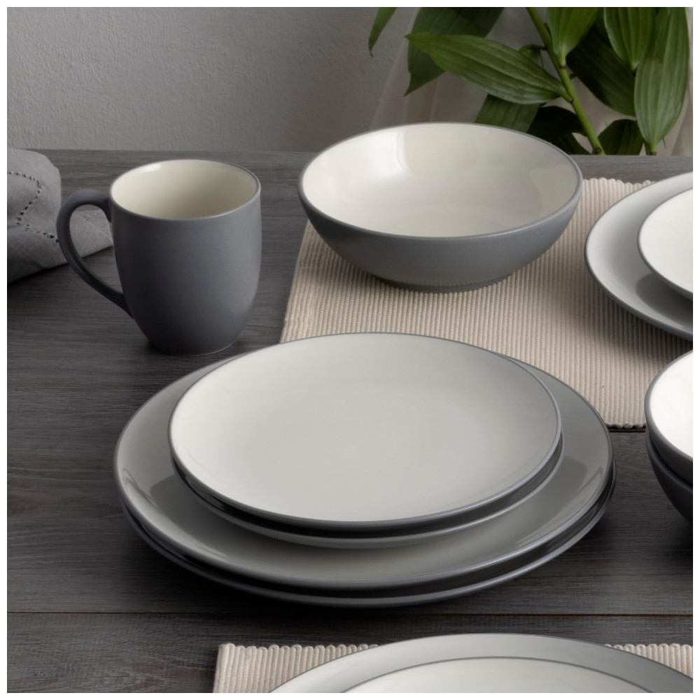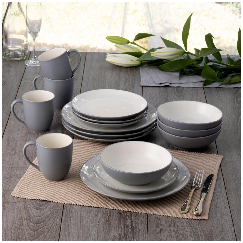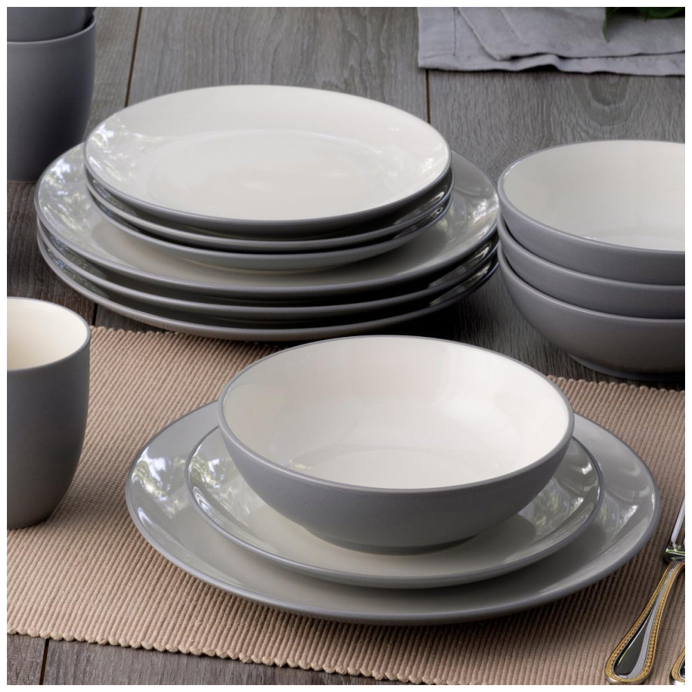 Aparelho de Jantar para Todas as Ocasiões com 16 Peças Formato Redondo e Material de Cerâmica Noritake Cinza
