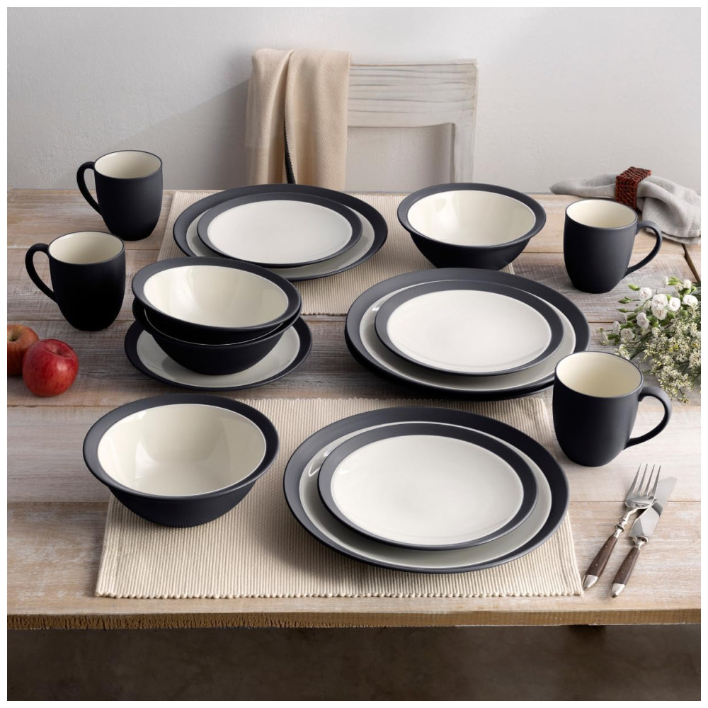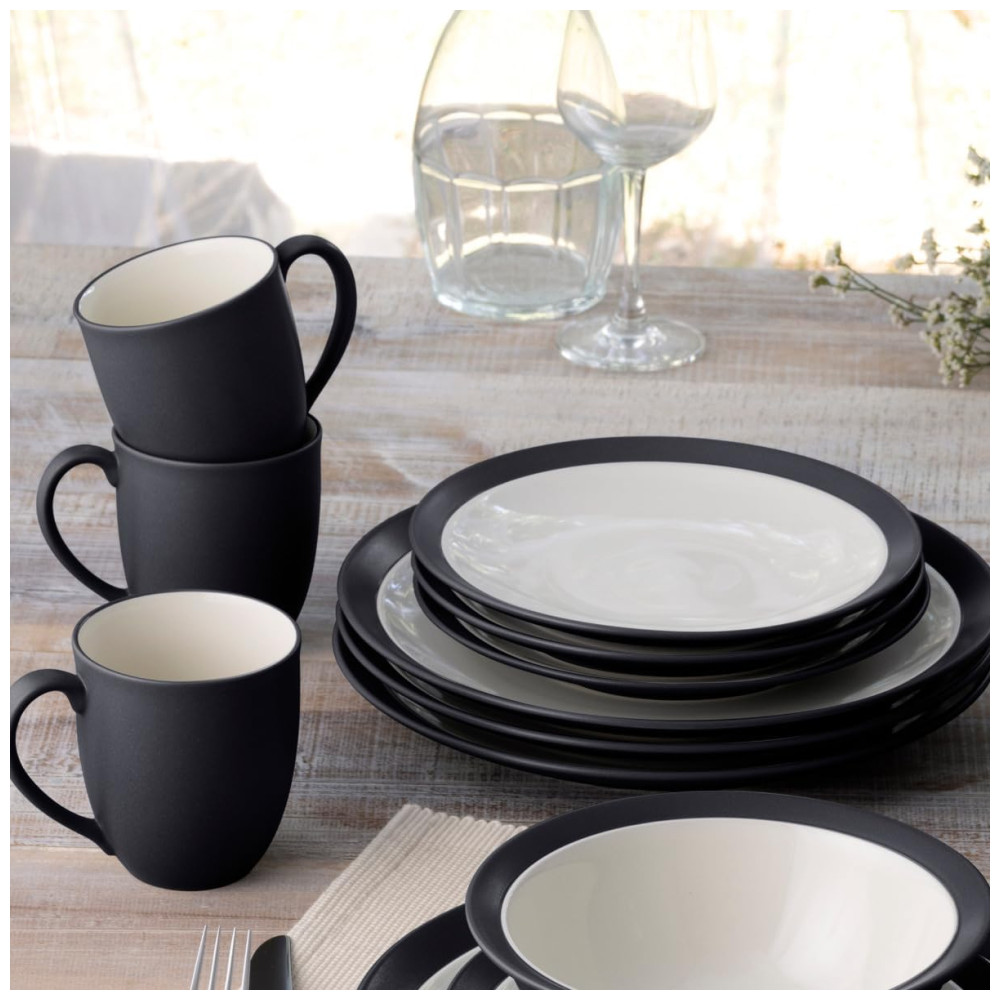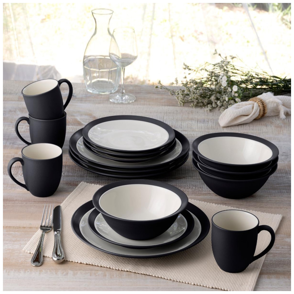 Aparelho de Jantar para Todas as Ocasiões com 16 Peças Formato Redondo e Material de Cerâmica Noritake Preto
