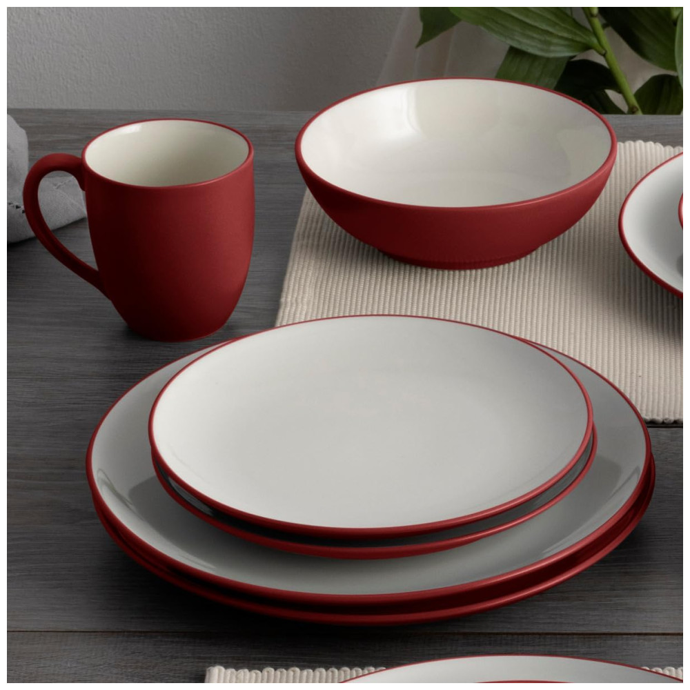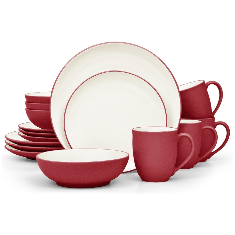 Jogo de Jantar Noritake Colorwave Raspberry 16 Peças Vermelho Cerâmica Formato Redondo Para 4 Pessoas Acabamento Fosco e Creme