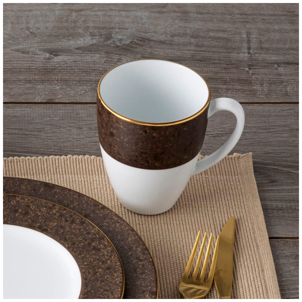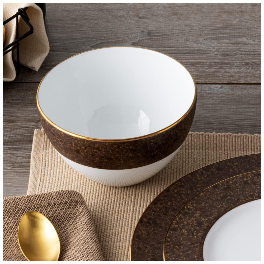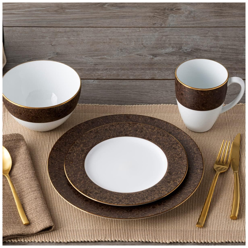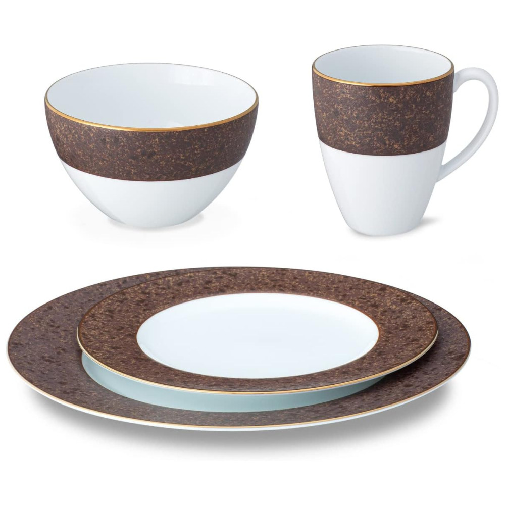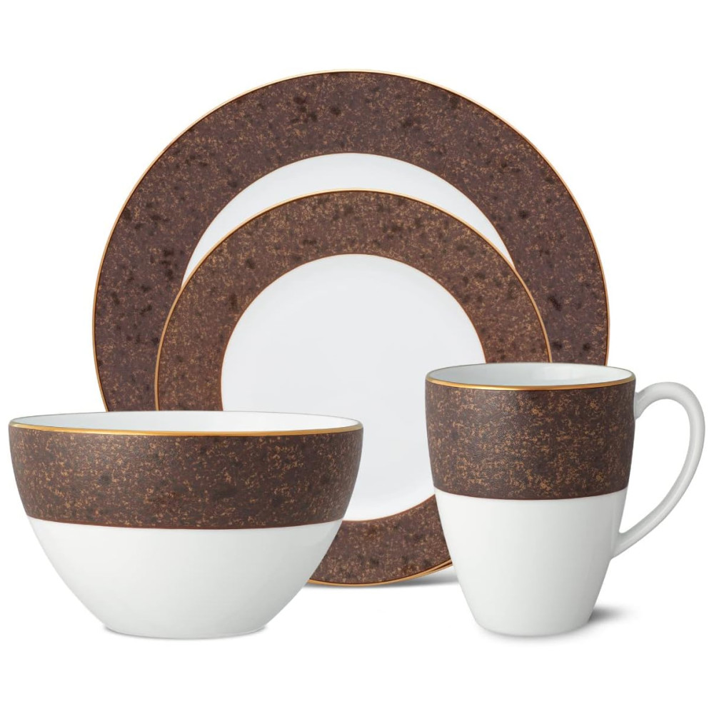 Aparelho de Jantar para Todas as Ocasiões com 4 Peças Formato Redondo e Material de Porcelana Noritake 1768-04G Branco e Marrom
