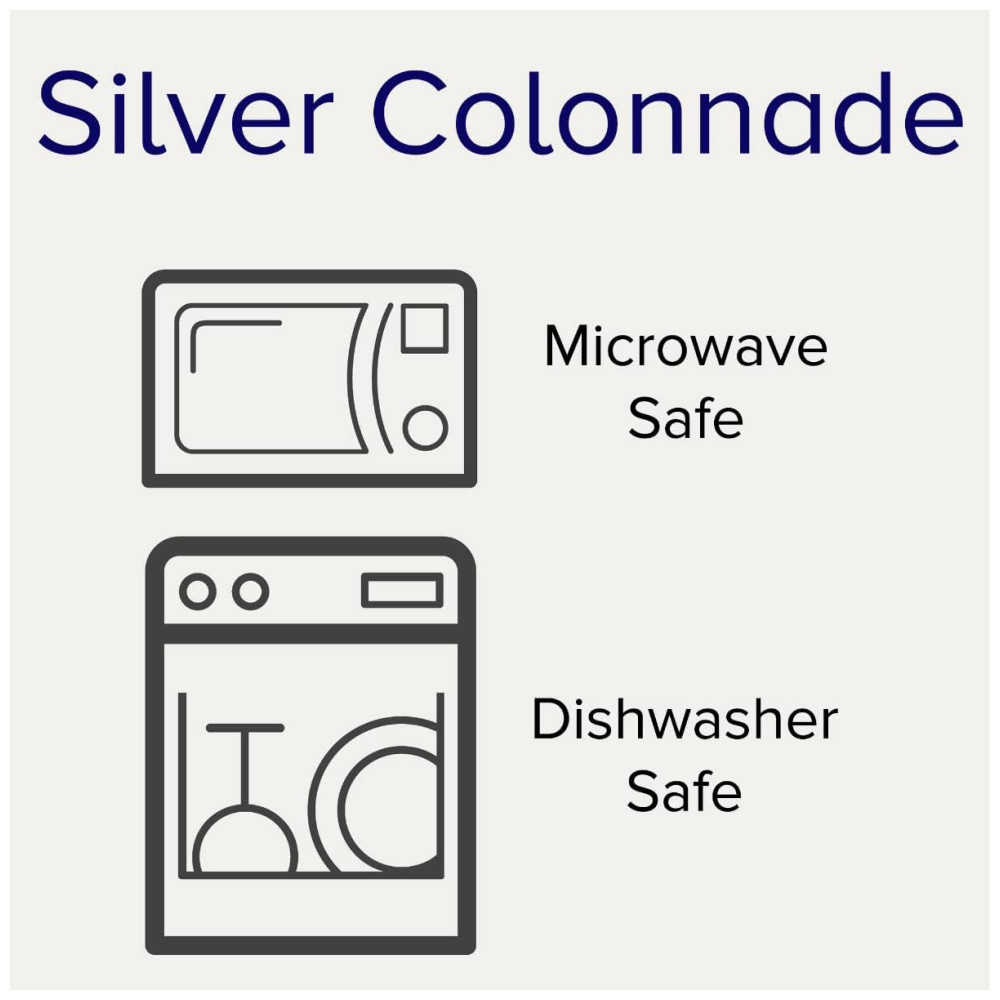 Além de seu charme, o Silver Colonnade é prático: pode ser usado tanto no micro-ondas quanto na lava-louças, tornando-se ideal para o uso diário.