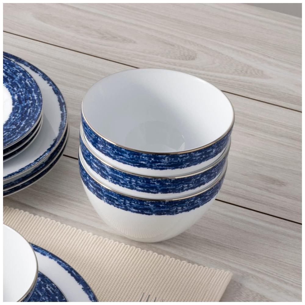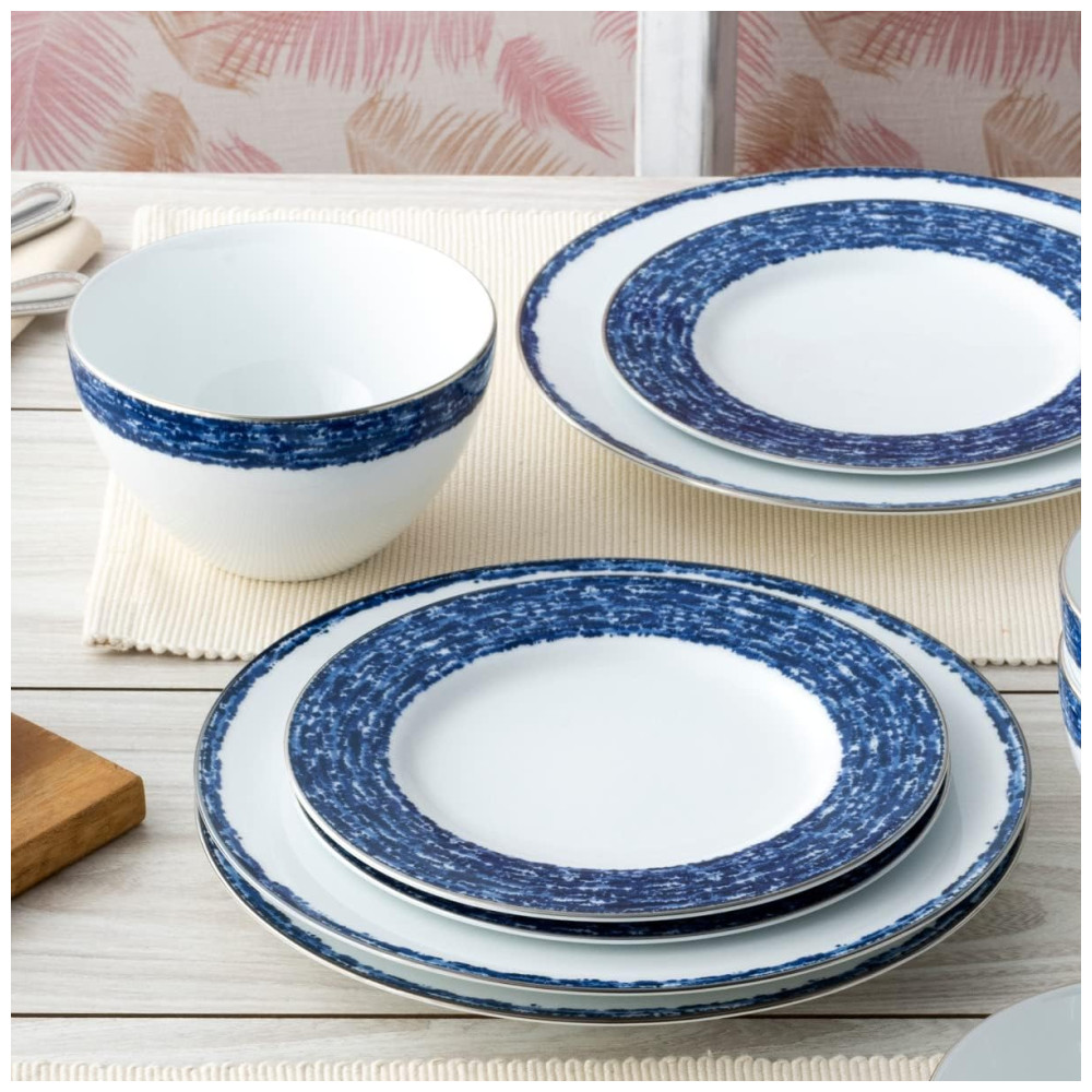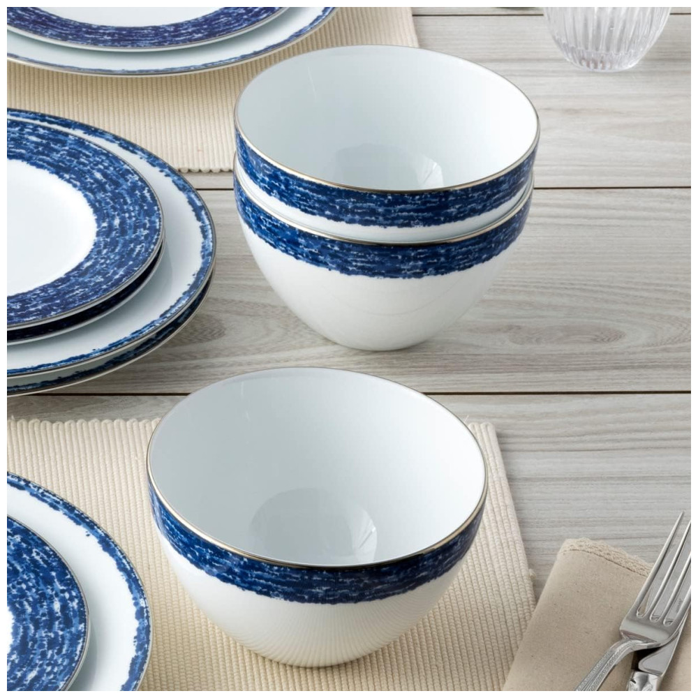 Aparelho de Jantar Para Todas as Ocasiões Elegância e Sofisticação para Sua Mesa com 12 Peças Formato Redondo e Material de Porcelana Noritake 1767-12E Branco e Azul
