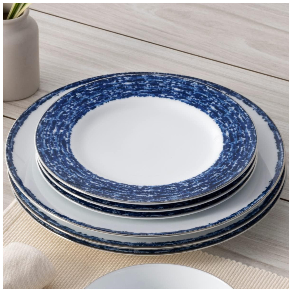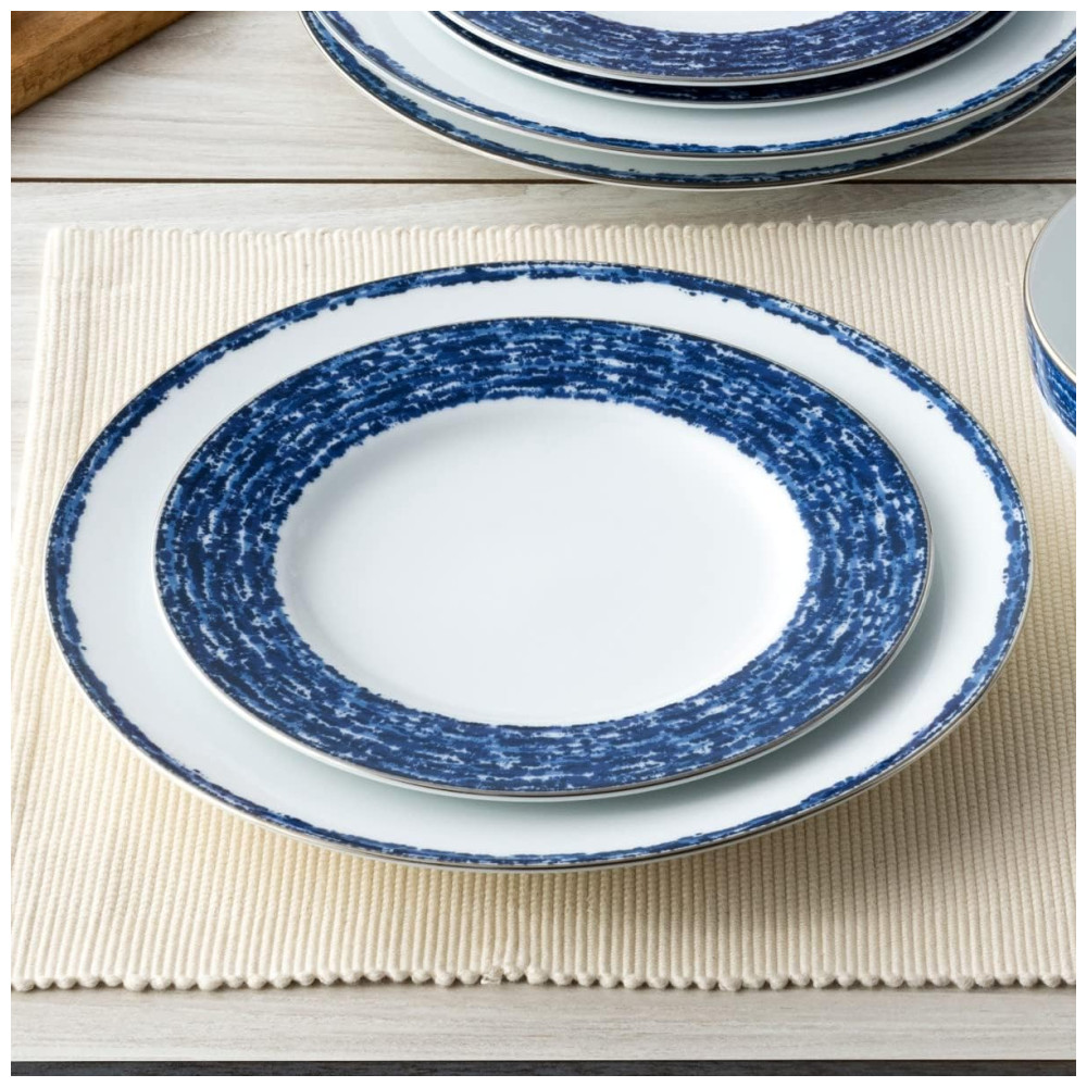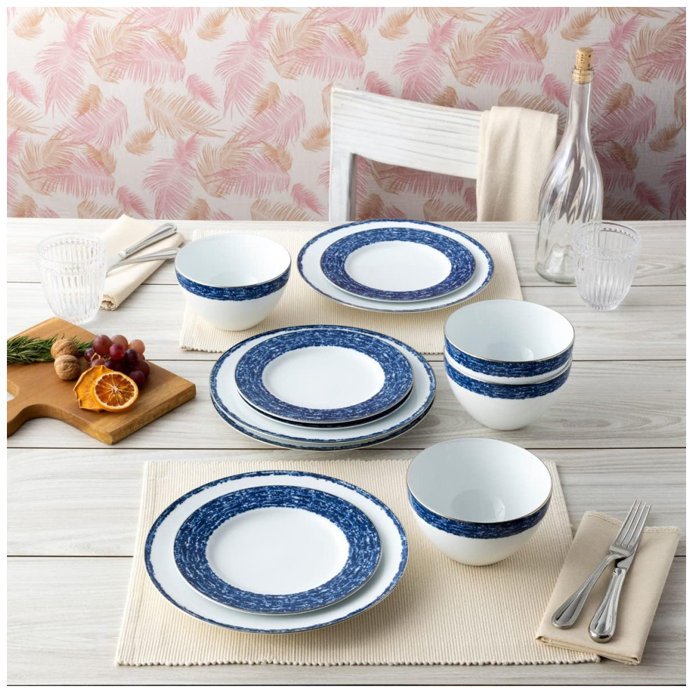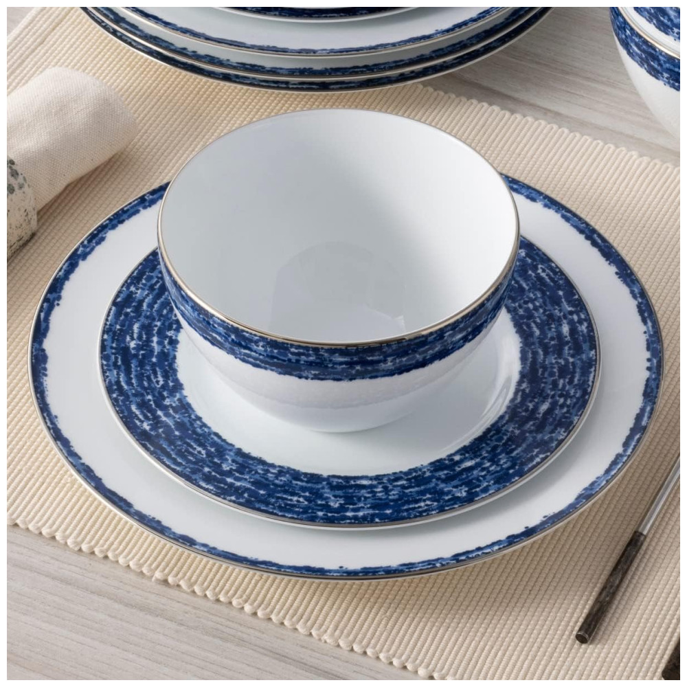 Aparelho de Jantar Para Todas as Ocasiões Elegância e Sofisticação para Sua Mesa com 12 Peças Formato Redondo e Material de Porcelana Noritake 1767-12E Branco e Azul