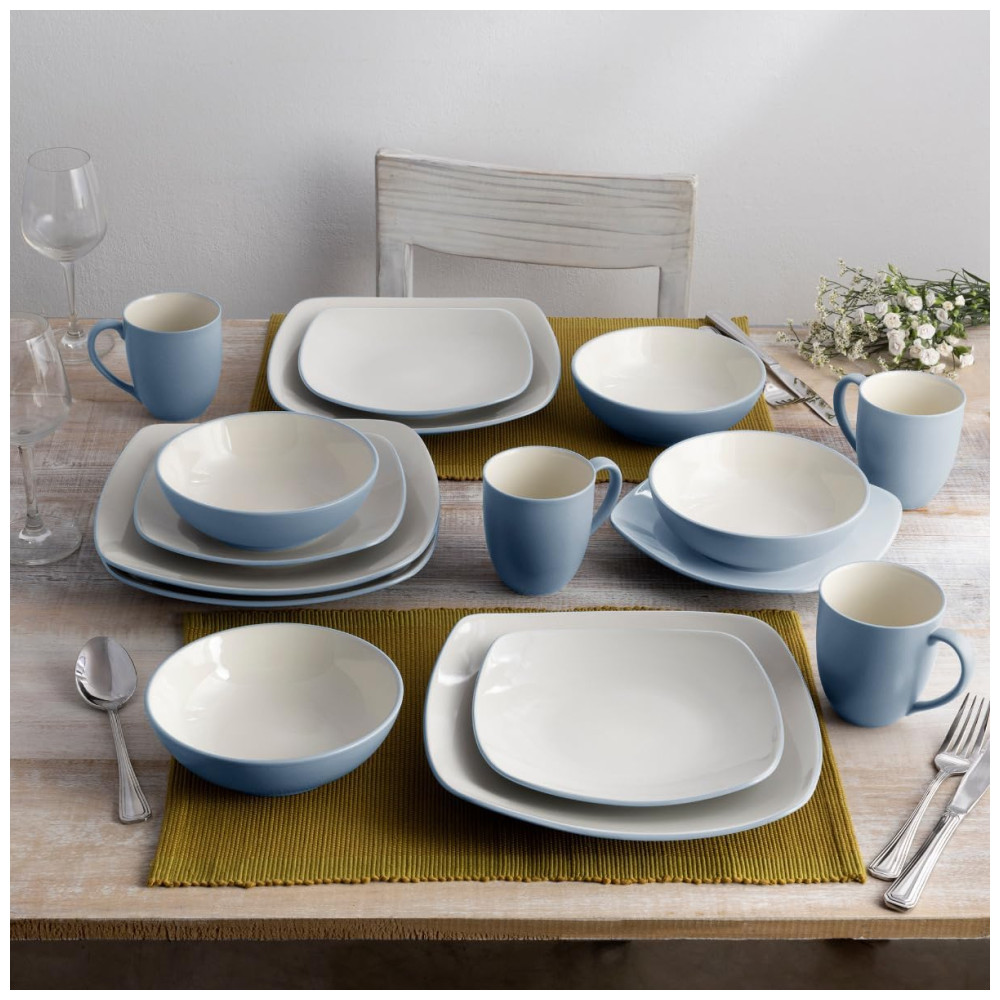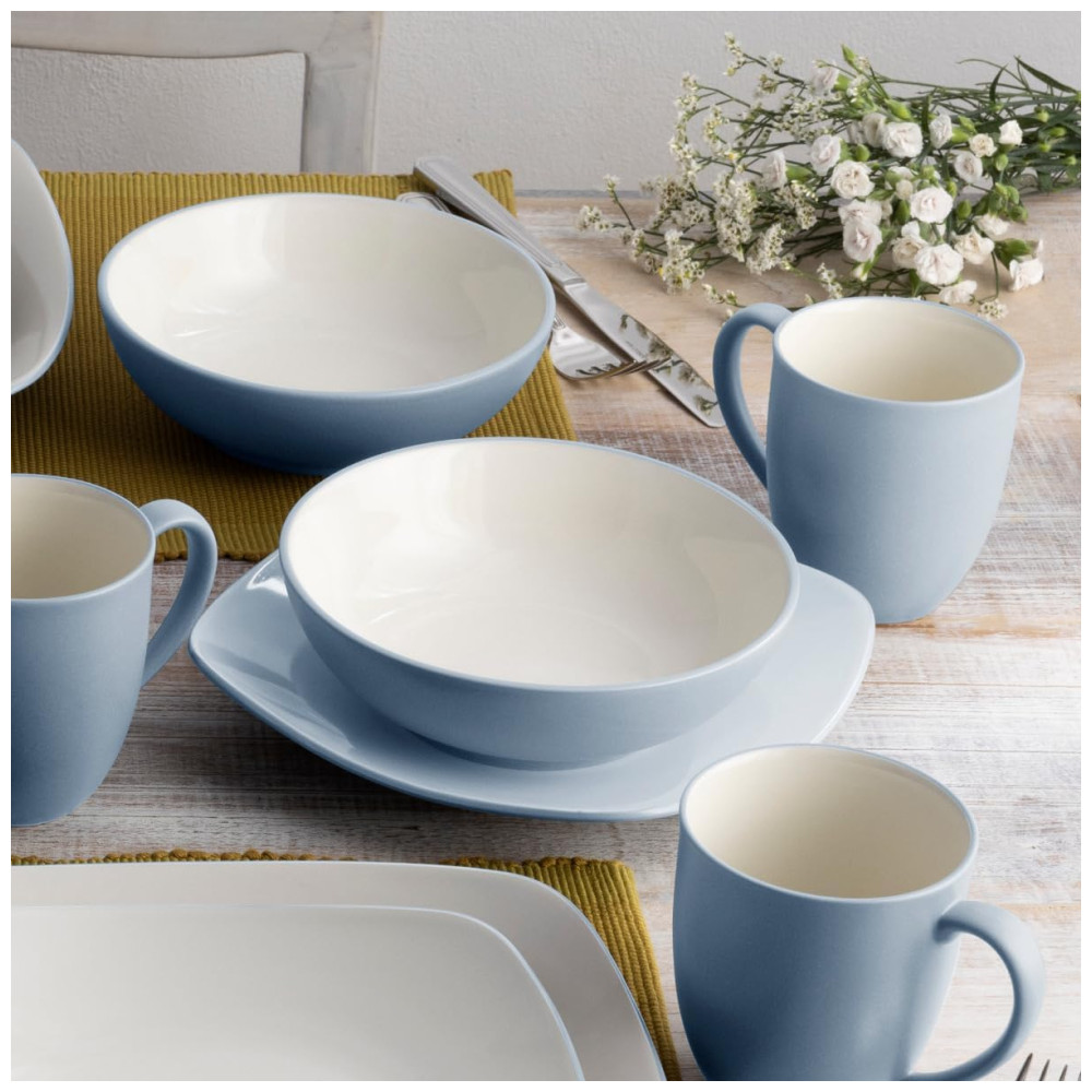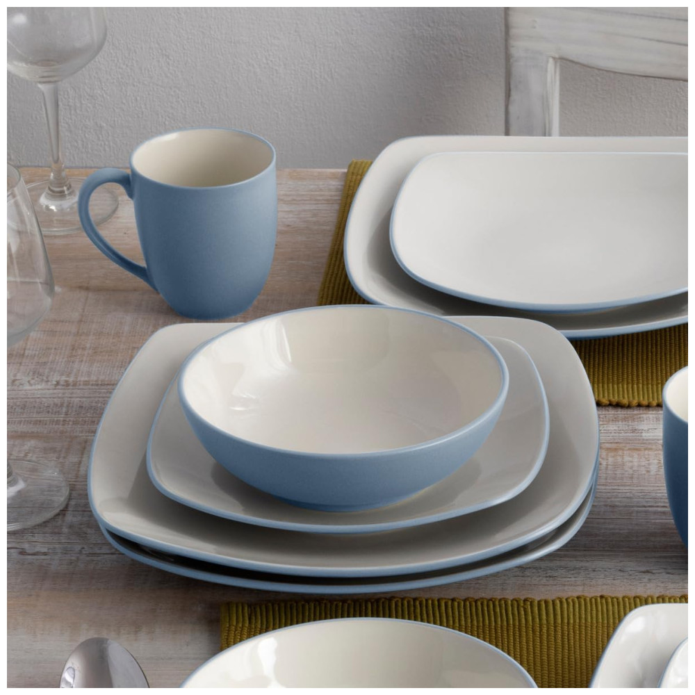 Aparelho de Jantar para Todas as Ocasiões Elegância e Sofisticação para Sua Mesa com 16 Peças Formato Quadrado e Material de Cerâmica Noritake Azul Claro