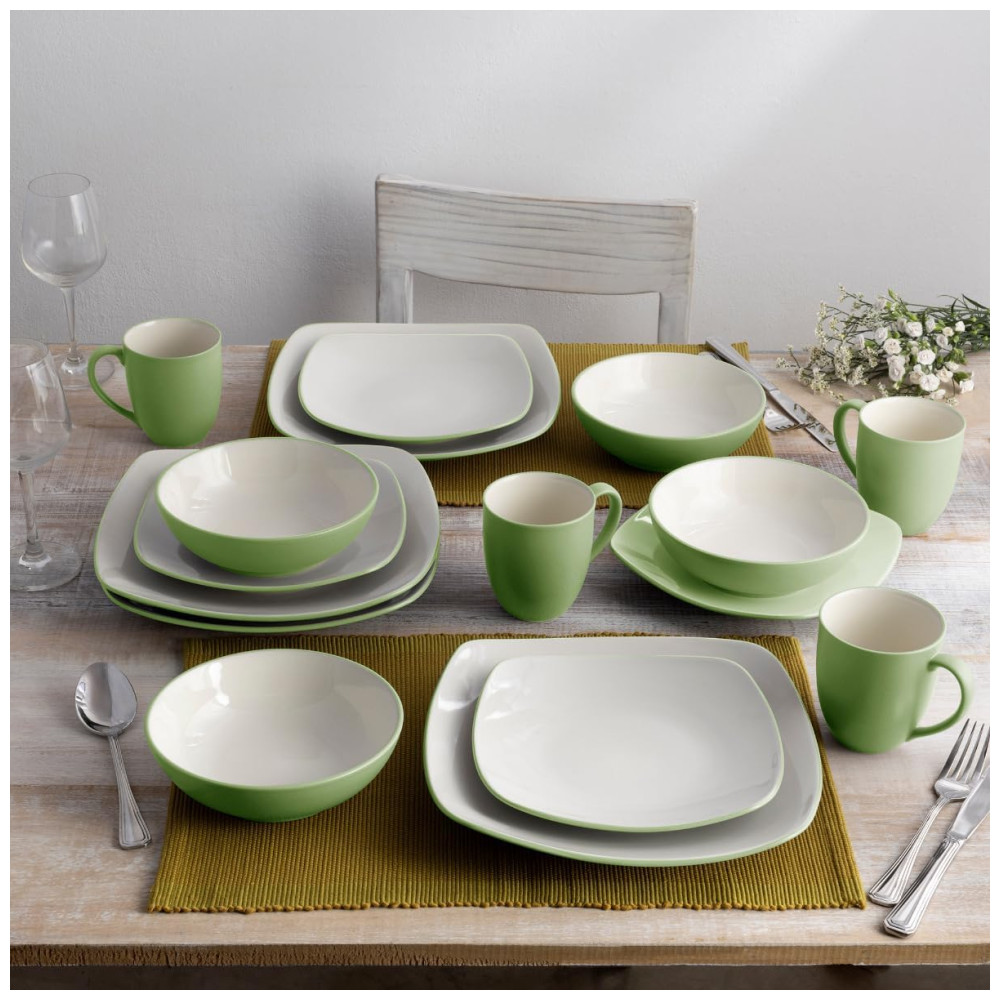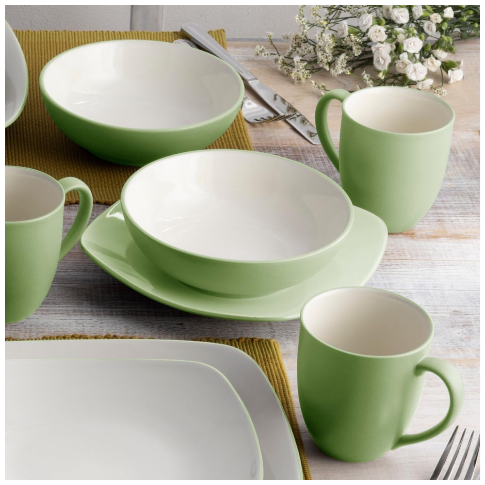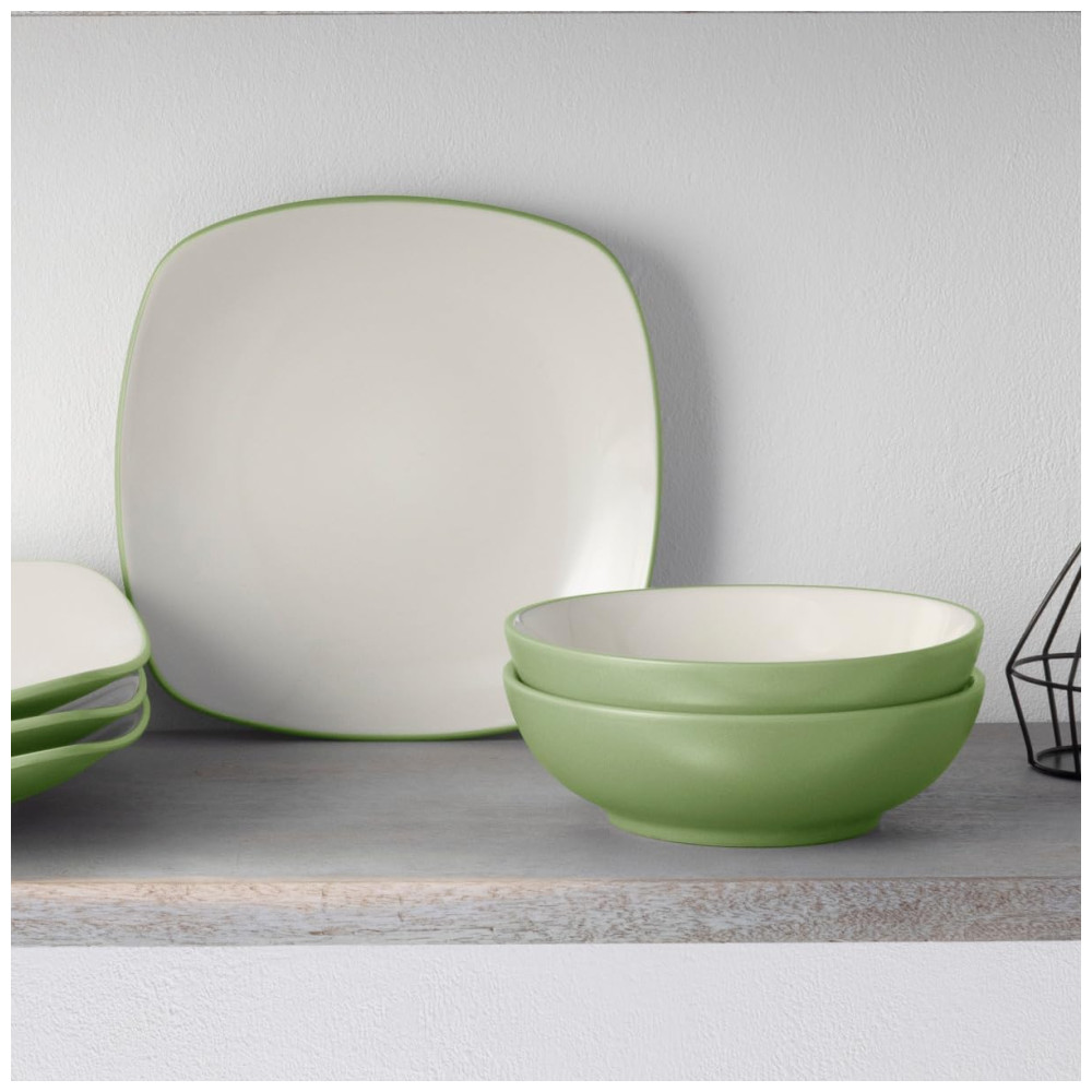 Aparelho de Jantar para Todas as Ocasiões Elegância e Sofisticação para Sua Mesa com 16 Peças Formato Quadrado e Material de Cerâmica Noritake Verde