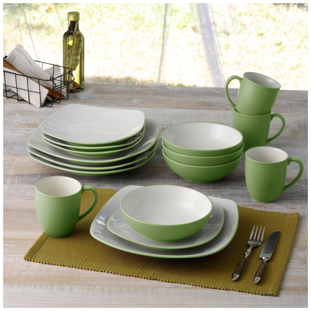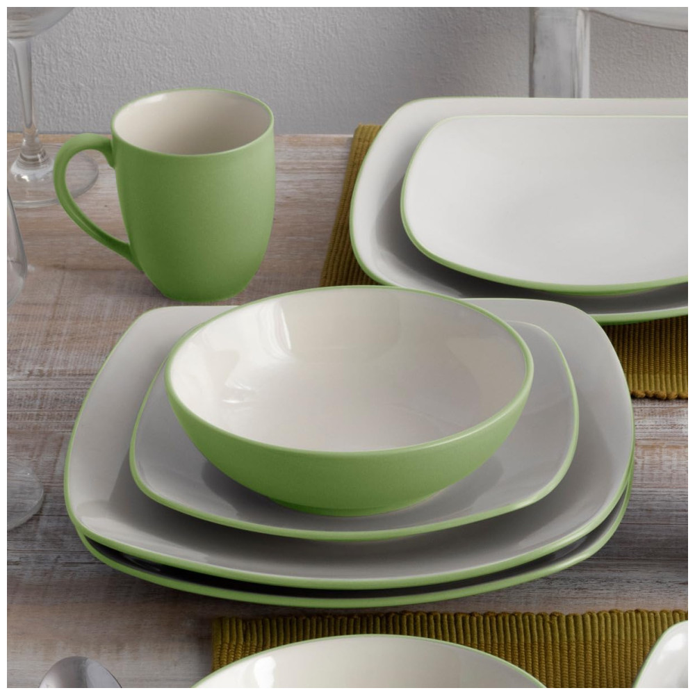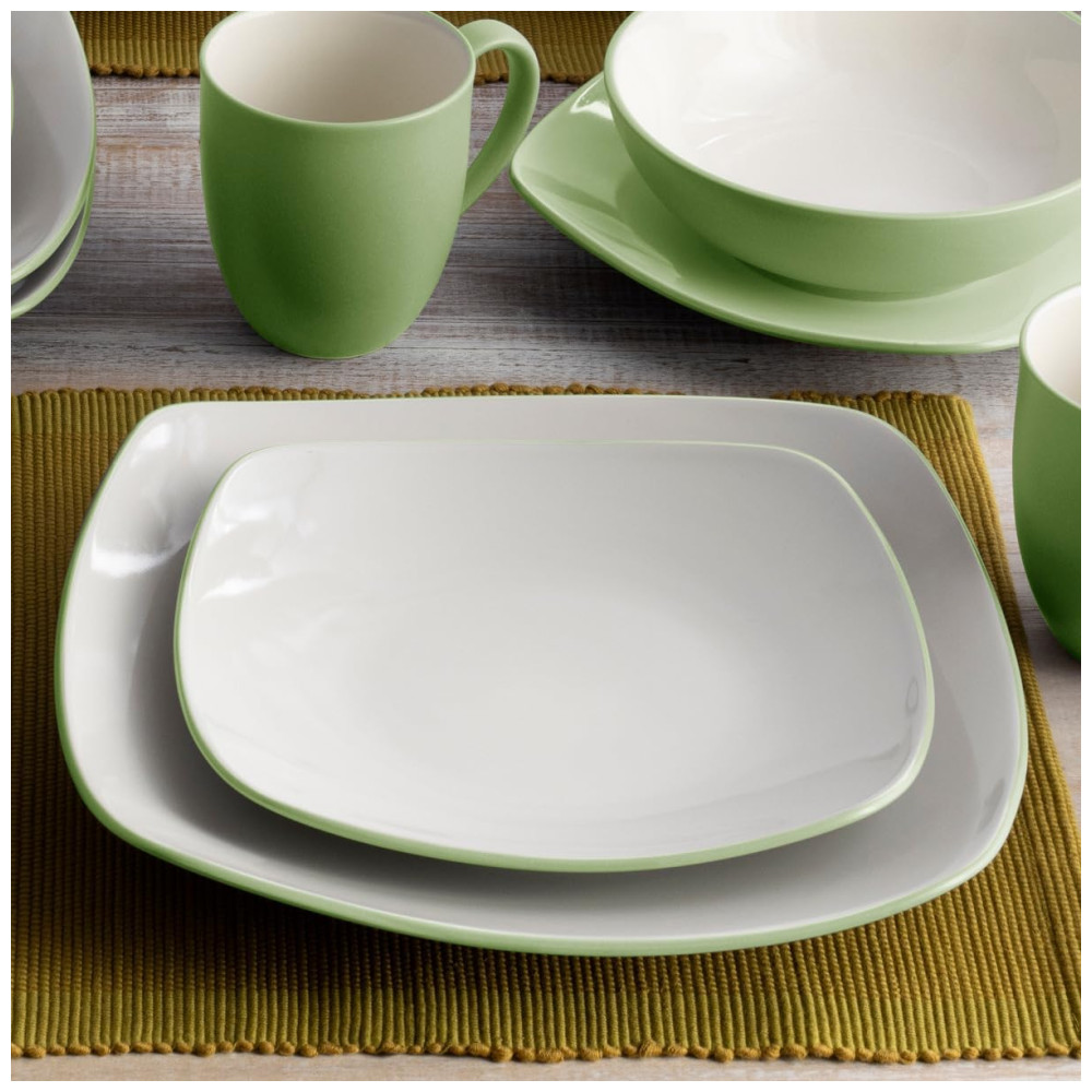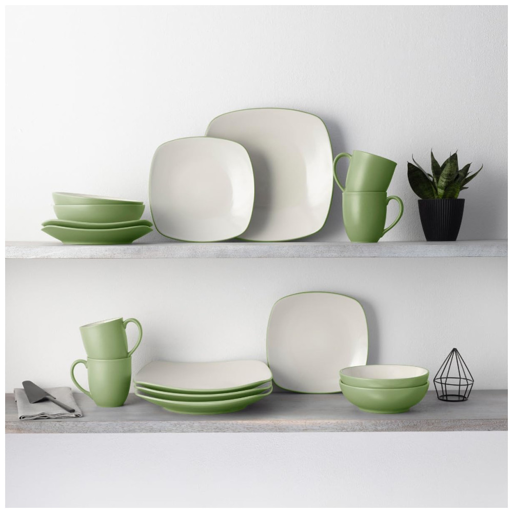 Aparelho de Jantar para Todas as Ocasiões Elegância e Sofisticação para Sua Mesa com 16 Peças Formato Quadrado e Material de Cerâmica Noritake Verde