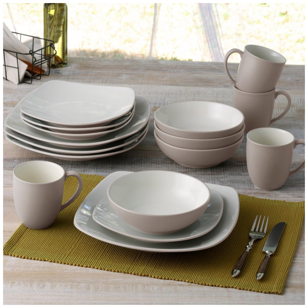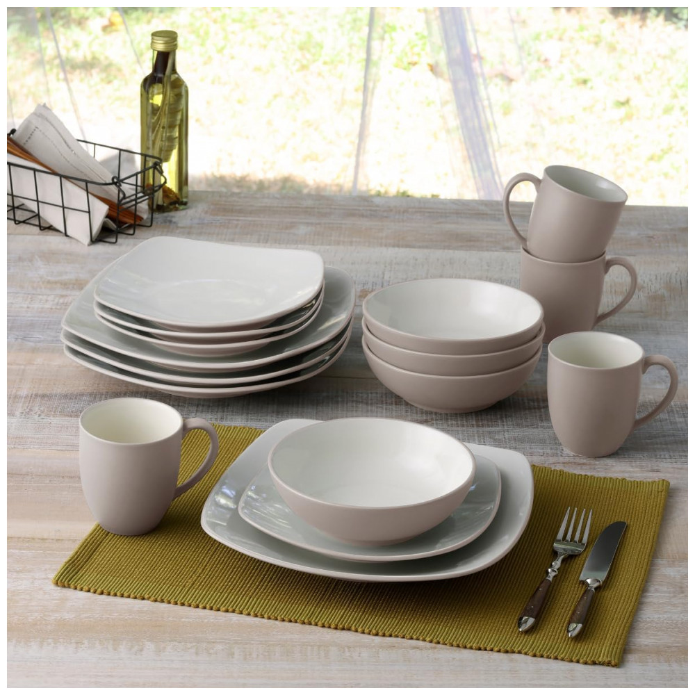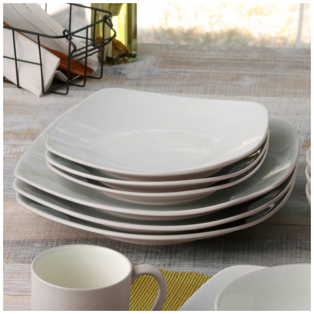 Aparelho de Jantar para Todas as Ocasiões Elegância e Sofisticação para Sua Mesa com 16 Peças Formato Quadrado e Material de Cerâmica sem BPA Noritake Bege