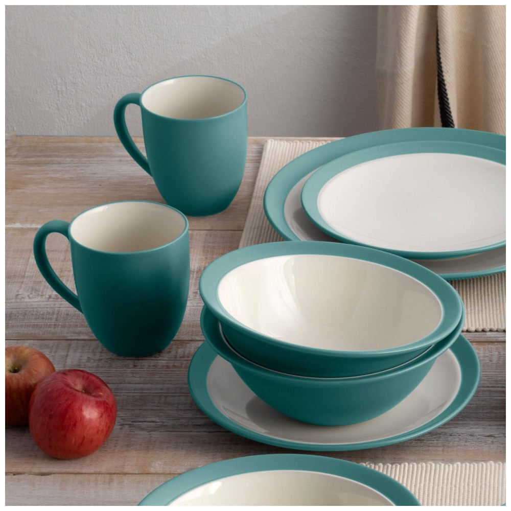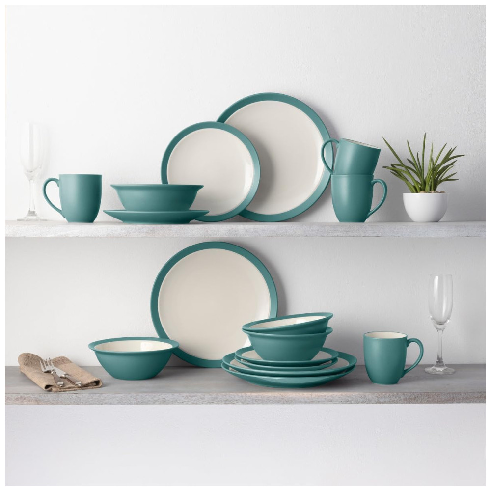 Aparelho de Jantar para Todas as Ocasiões Elegância e Sofisticação para Sua Mesa com 16 Peças Formato Redondo e Material de Cerâmica Noritake Azul Turquesa