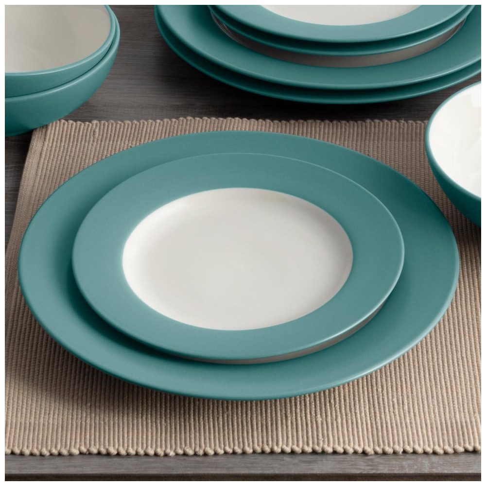 Aparelho de Jantar para Todas as Ocasiões Elegância e Sofisticação para Sua Mesa com 16 Peças Formato Redondo e Material de Cerâmica Noritake Azul Turquesa