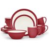O conjunto de 16 peças inclui pratos de jantar, pratos de salada, tigelas e canecas para 4 pessoas.