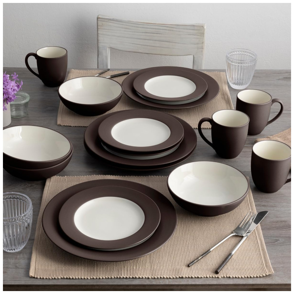 Aparelho de Jantar para Todas as Ocasiões Elegância e Sofisticação para Sua Mesa com 16 Peças Formato Redondo e Material de Cerâmica Noritake Marrom