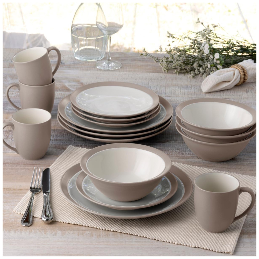 Aparelho de Jantar para Todas as Ocasiões Elegância e Sofisticação para Sua Mesa com 16 Peças Formato Redondo e Material de Cerâmica sem BPA Noritake Bege