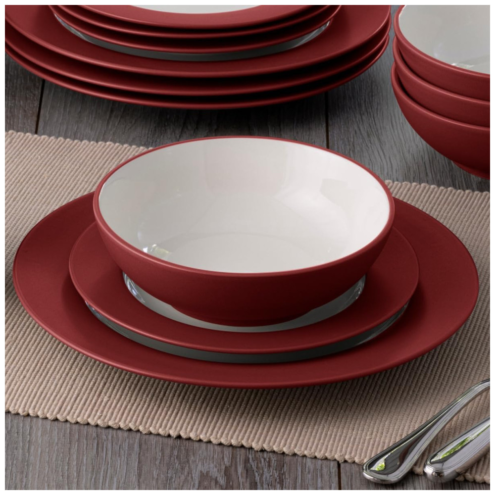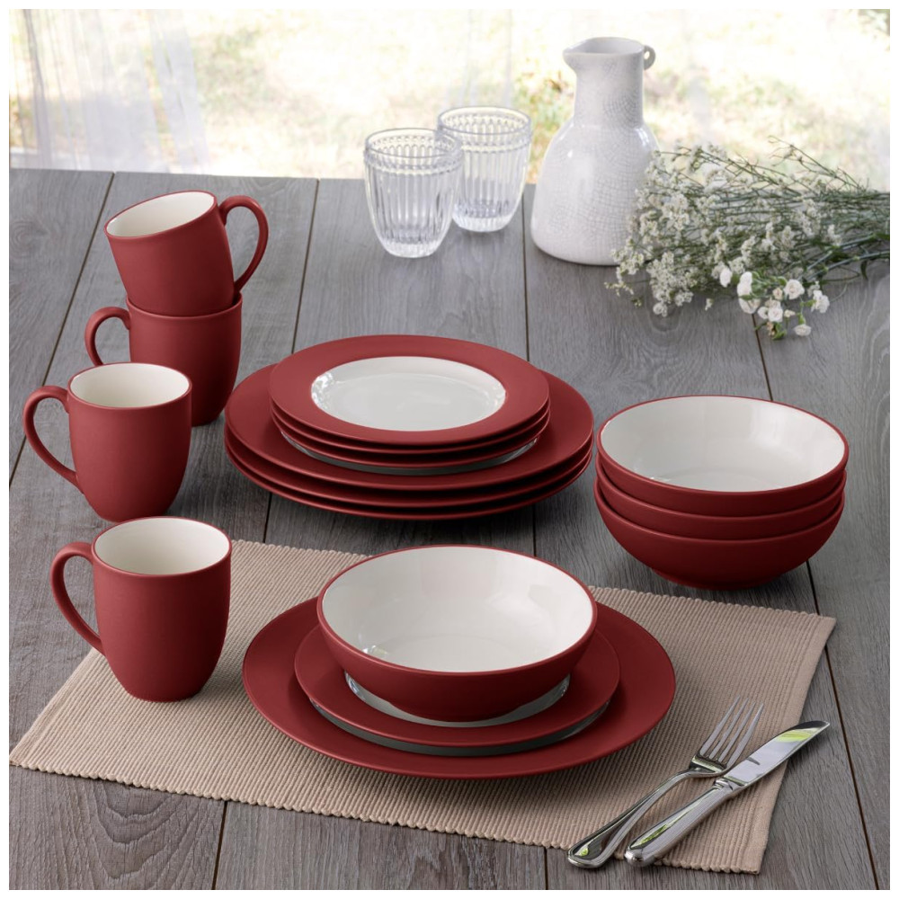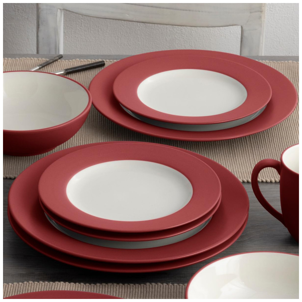 Aparelho de Jantar para Todas as Ocasiões Elegância e Sofisticação para Sua Mesa com 16 Peças Formato Redondo e Material de Cerâmica sem BPA Noritake Vermelho