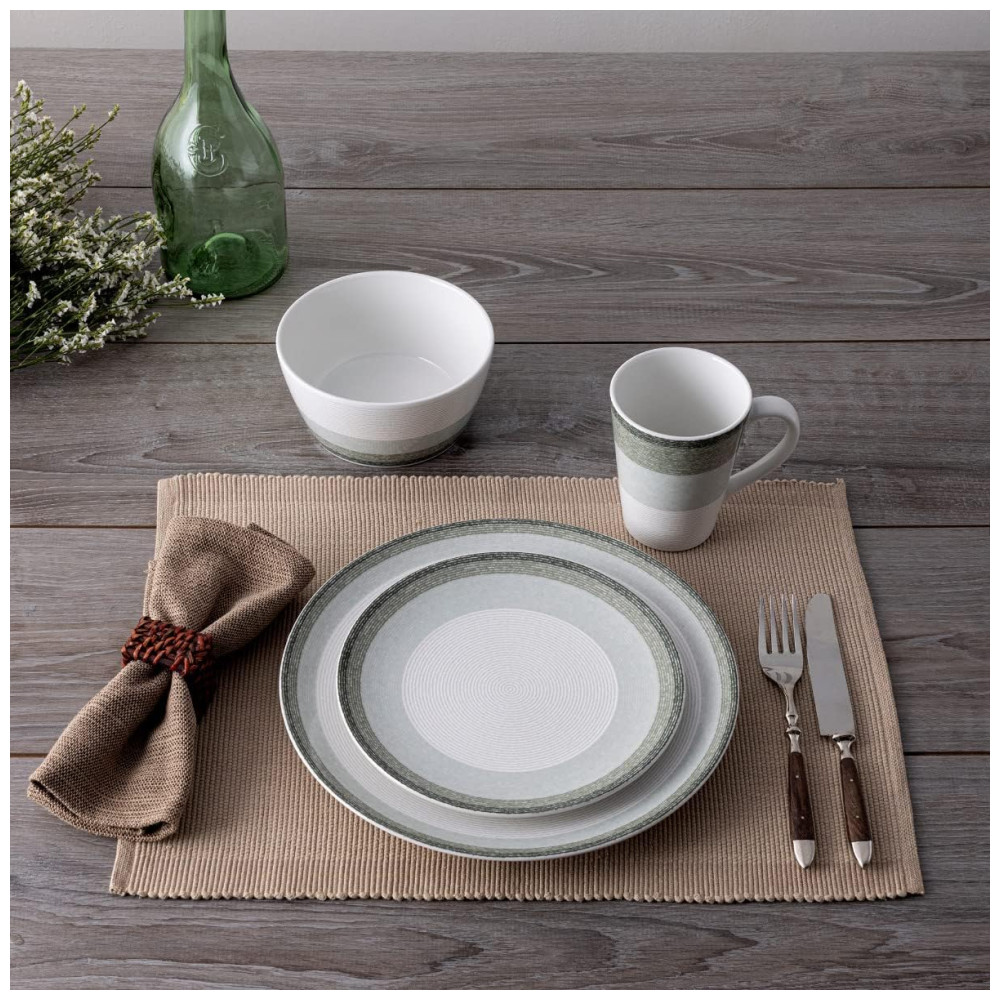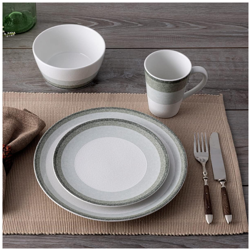 Aparelho de Jantar para Todas as Ocasiões Estilo Moderno com 4 Peças Formato Redondo e Material de Porcelana Noritake G037-04G Cinza e Verde