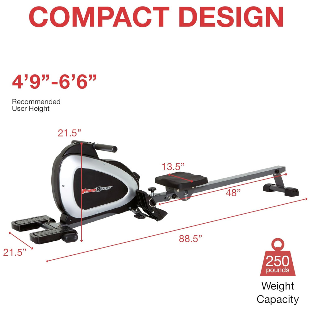 Aparelho Remador Magnético com Bluetooth para Treino em Casa FITNESS REALITY Cinza