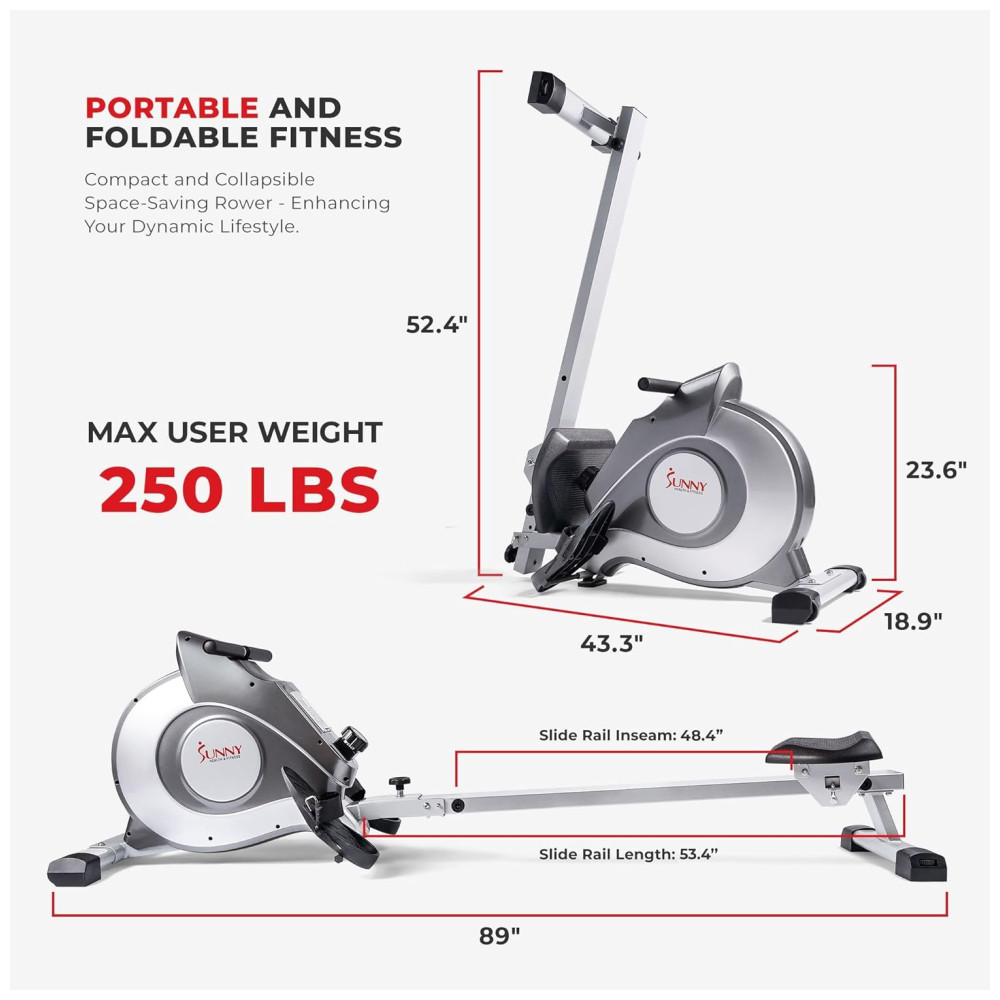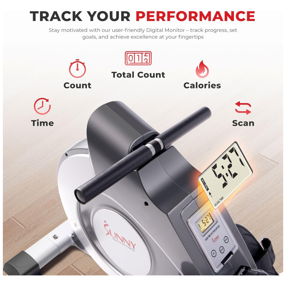 Aparelho Remador Magnético com Bluetooth para Treino em Casa SUNNY HEALTH FITNESS Cinza