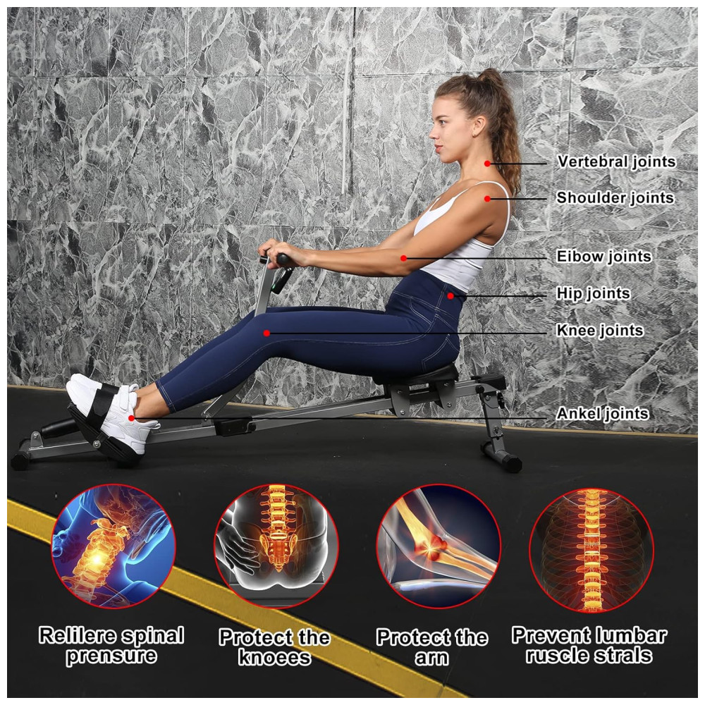 Monitor Digital A tela da máquina de remo dobrável está equipada com funções de tempo, contagem, distância, calorias e varredura. Você pode exibir o progresso do exercício para concluir as metas de condicionamento físico correspondentes.