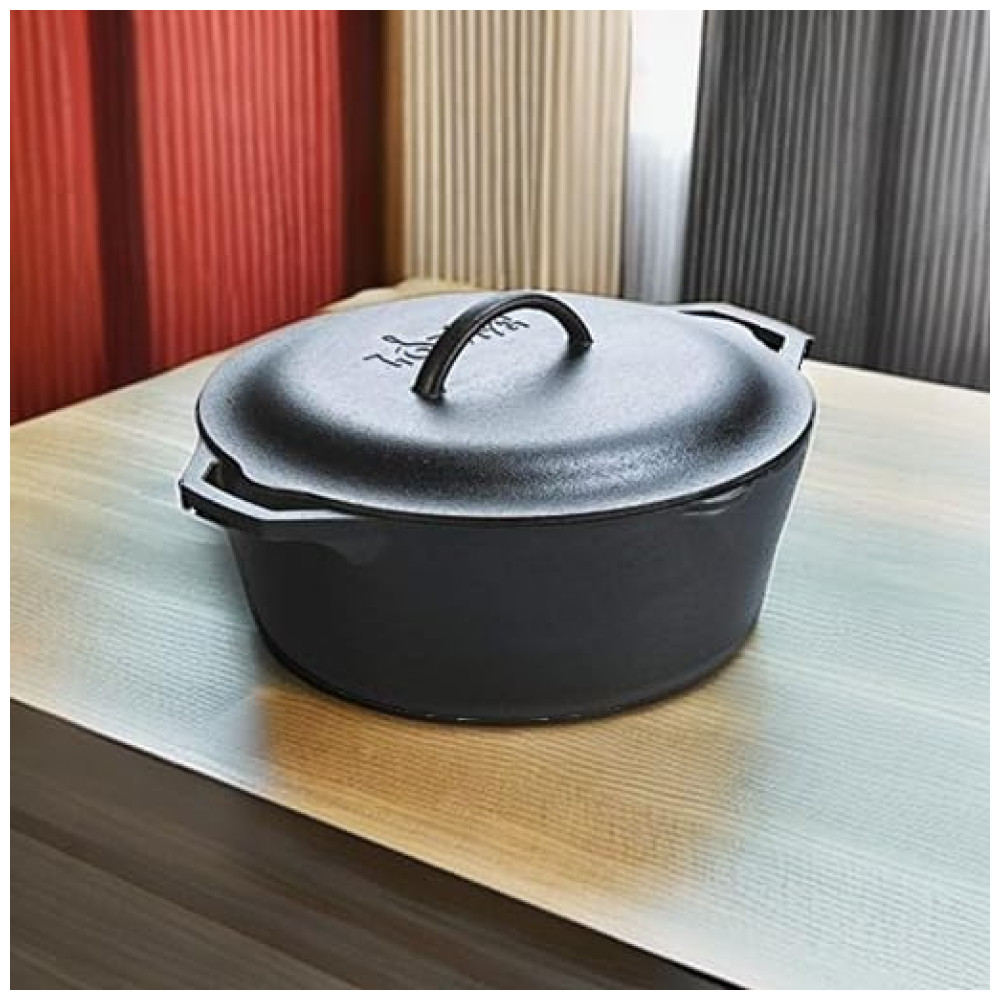 um alojamento pré temperado com forno holandês de ferro fundido de 7 Litros.