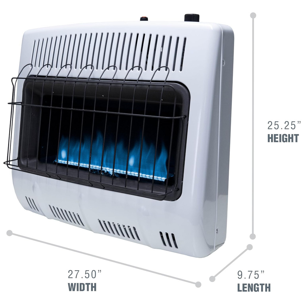 Aquecedor de propano líquido de 30.000 BTU para aquecer espaços de até 41 metros quadrados. Restrito no Canadá