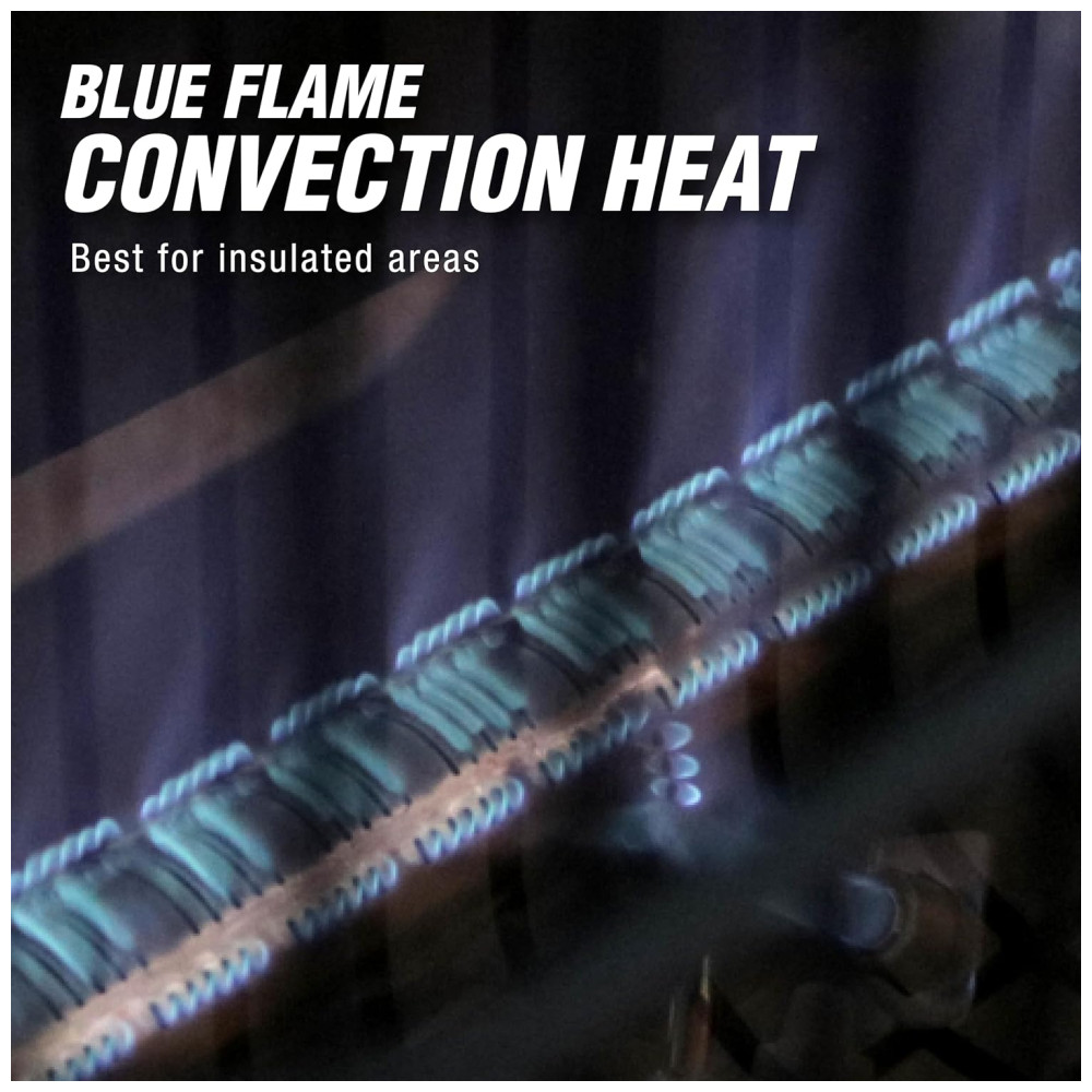 Queimador de chama azul para calor de convecção uniforme. Calor suplementar em câmaras frias, adições, salas de sol, cabines