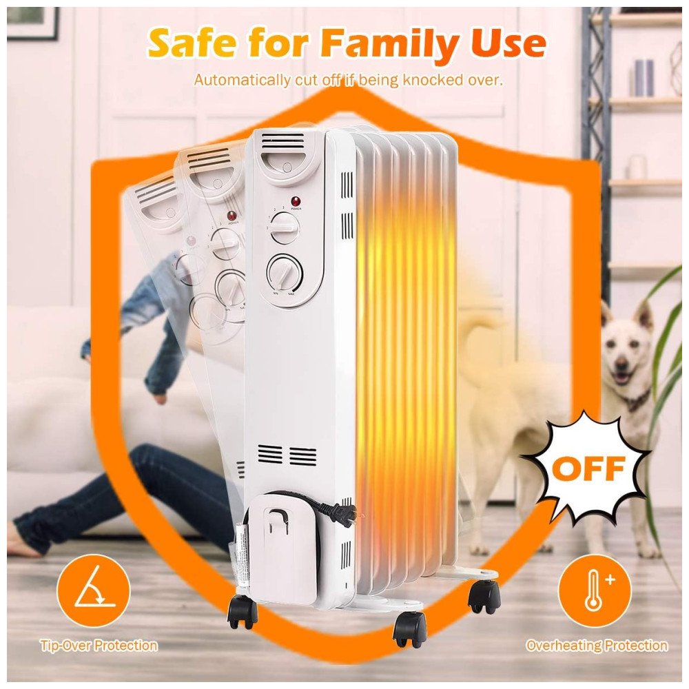 Descubra o Aquecedor a Óleo de 1500W TANGKULA, Aquecedor de Radiador Portátil com Termostato Ajustável, Proteção Contra Tombamento e Sobreaquecimento, Aquecedor Elétrico para Casa e Escritório.
