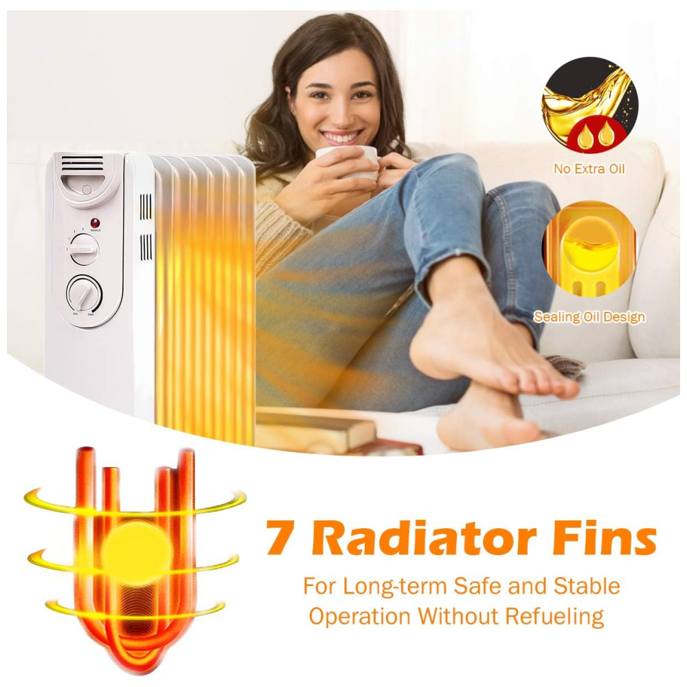 Aquecedor a Óleo Portátil Silencioso com Proteção Contra Super Aquecimento 110V 1500W TANGKULA Branco