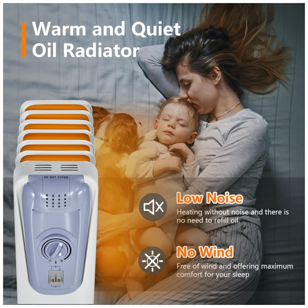 Sem Manutenção e Aquecimento Silencioso: Este aquecedor a óleo é equipado com óleo permanentemente selado para evitar vazamentos, não sendo necessário adicionar óleo extra. Nosso aquecedor funciona silenciosamente e não perturbará seu sono, trabalho ou pensamentos, permitindo que você desfrute de um ambiente tranquilo.