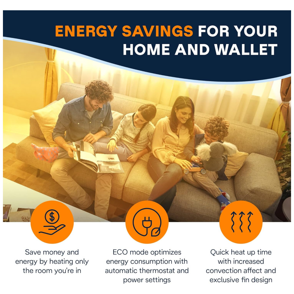 1500 watts de calor duradouro e silencioso – Ideal para espaços pequenos a médios.