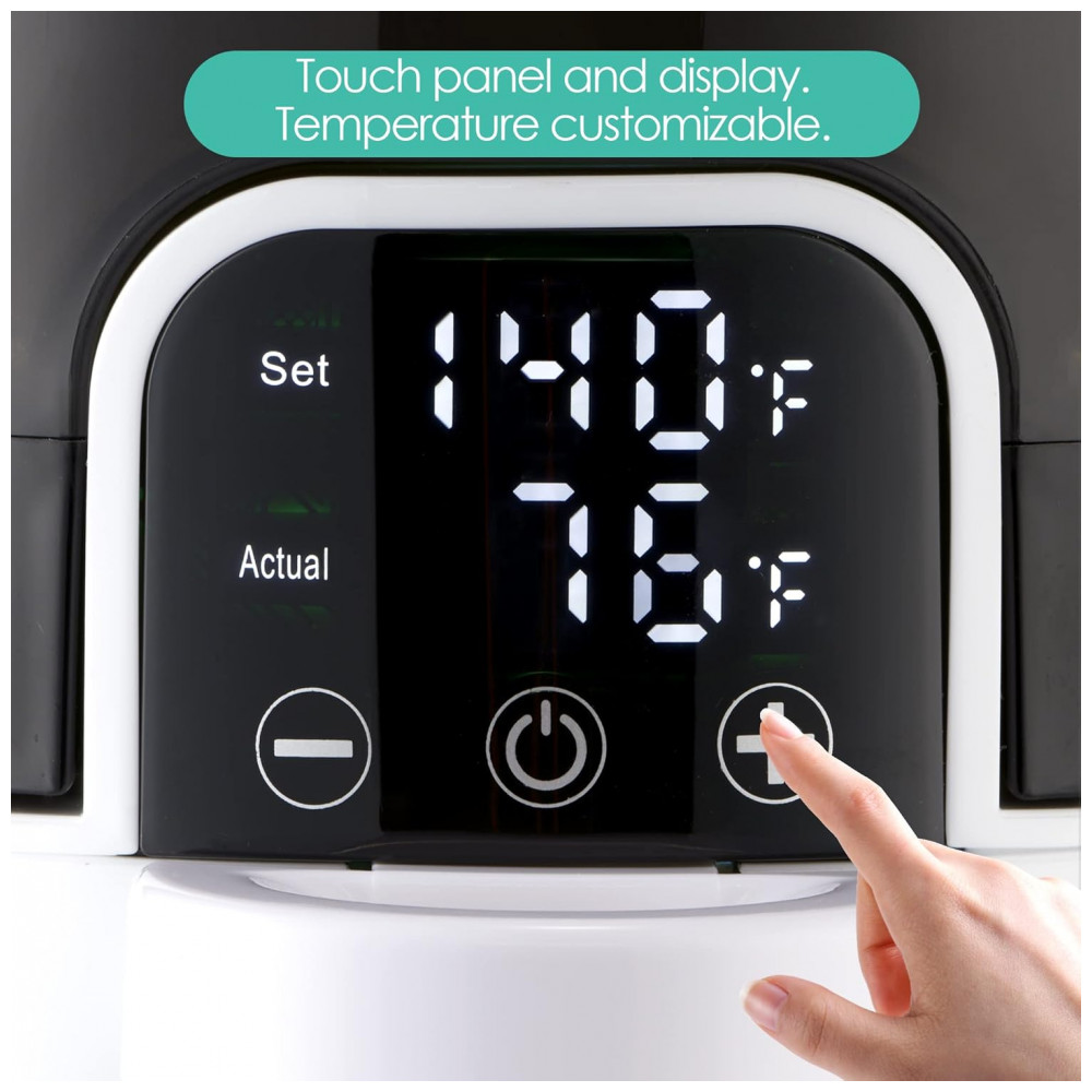 O Aquecedor Água Dispenser Bellababy é um aparelho para preparo instantâneo de mamadeiras com água aquecida, tanque de água destacável de 1,7 L e display LED touch que mostra temperatura em tempo real. Indicado para fórmulas infantis, chá, café ou macarrão instantâneo, mantém água aquecida 24 horas com ajuste de temperatura entre temperatura ambiente e 70°C.