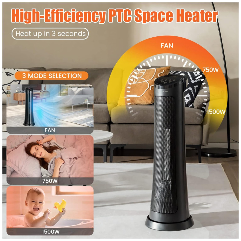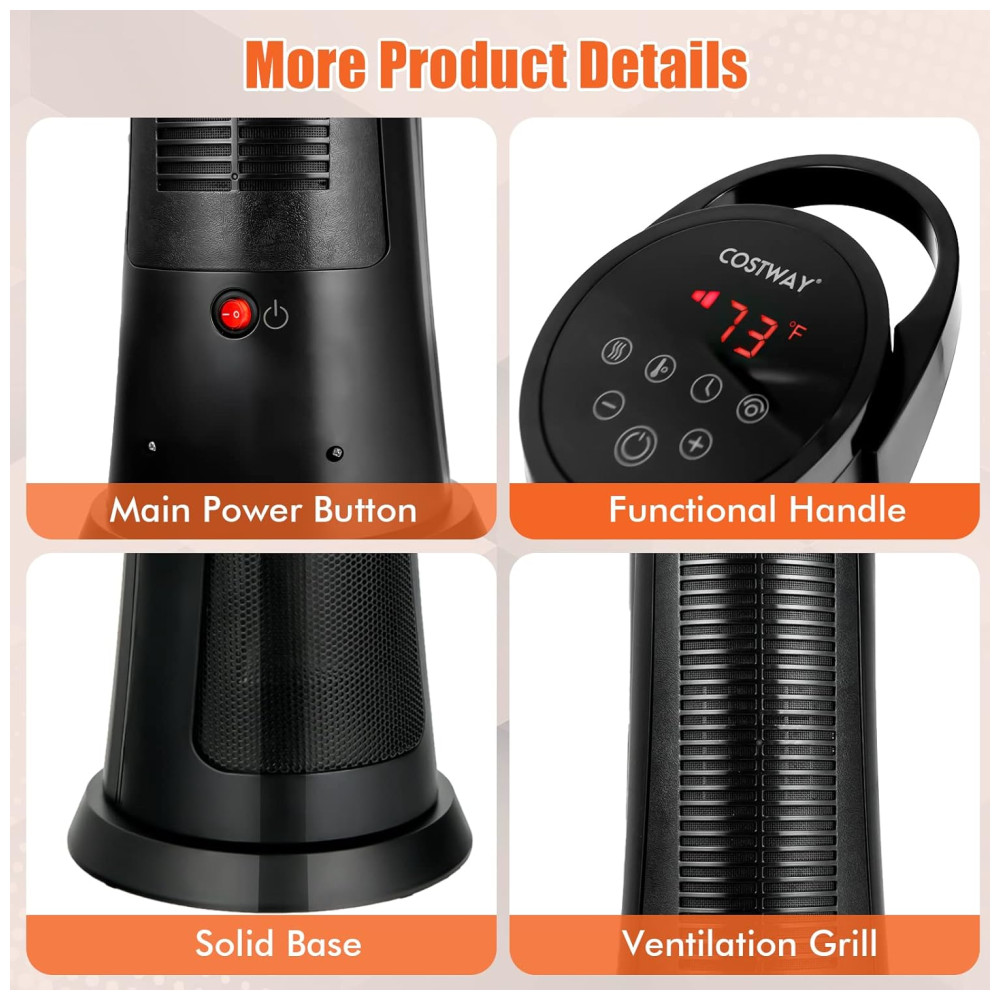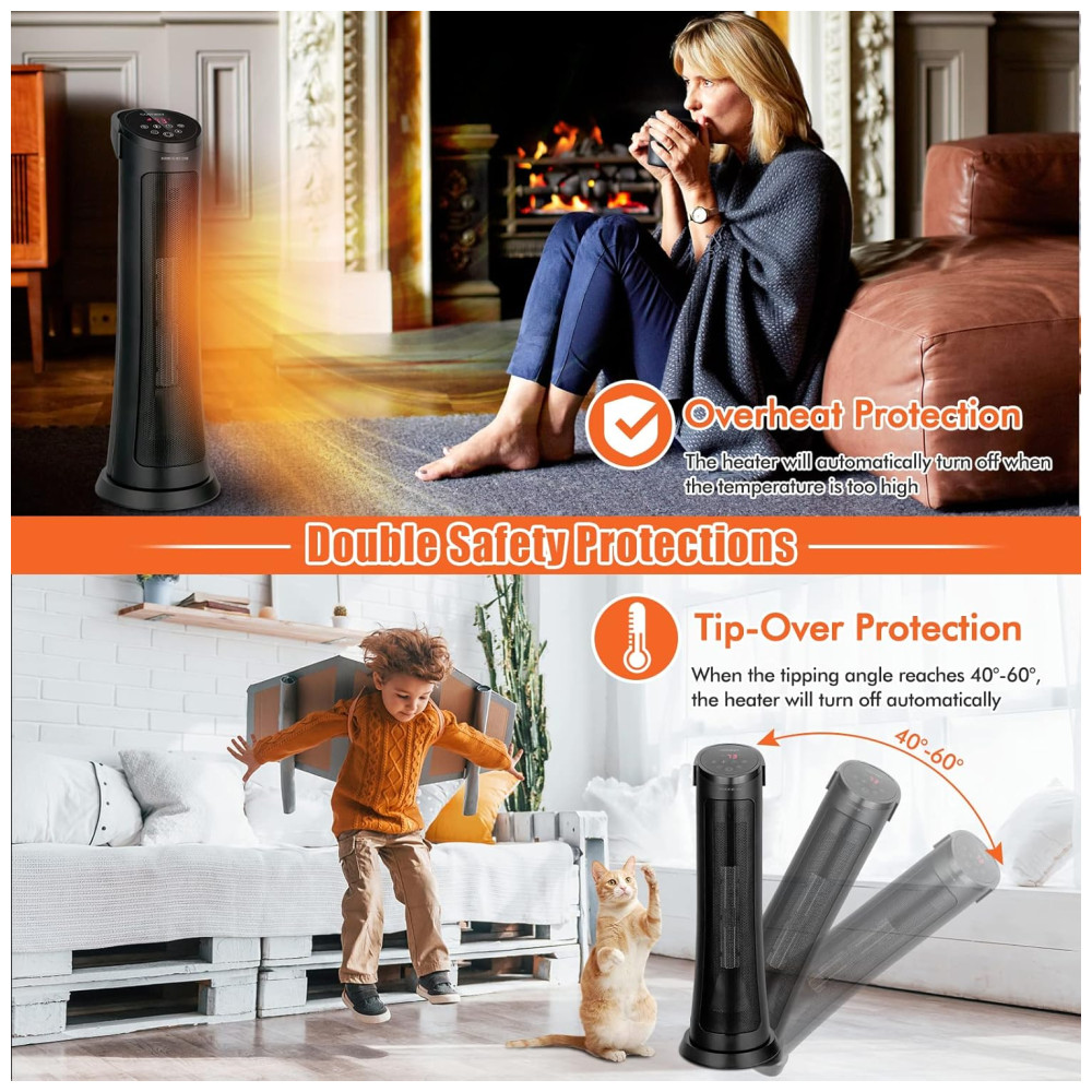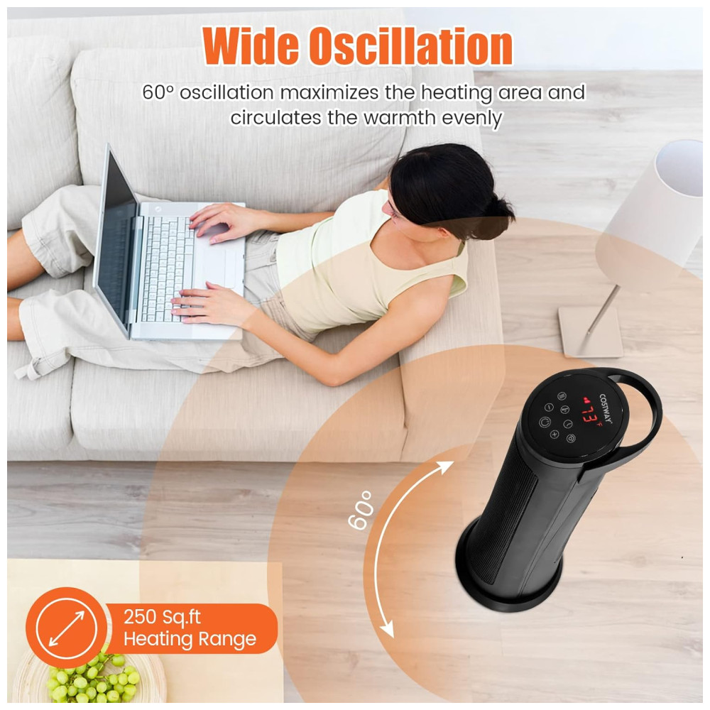 Aquecedor Cerâmico com Oscilação 60º e Proteção Contra Sobreaquecimento 110V 1500W COSTWAY Preto