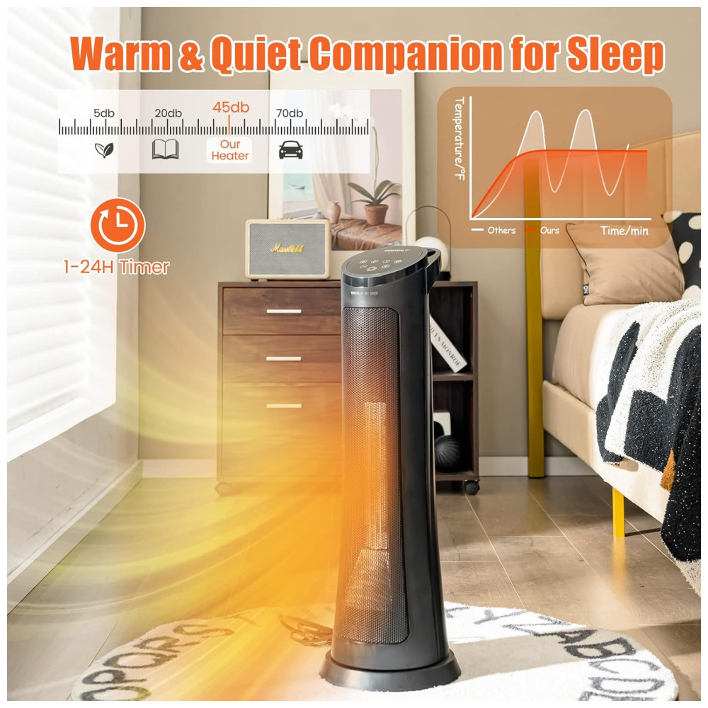Operação Segura e Silenciosa: O aquecedor elétrico opera com baixo ruído (≤45dB) e possui um timer de 24H, permitindo que você durma tranquilo. Além disso, o aquecedor é aprovado pelo ETL e possui proteção contra superaquecimento e tombamento, garantindo alta segurança durante o uso.