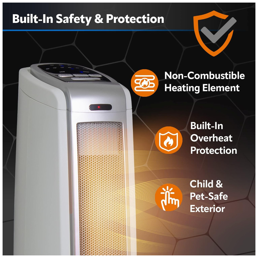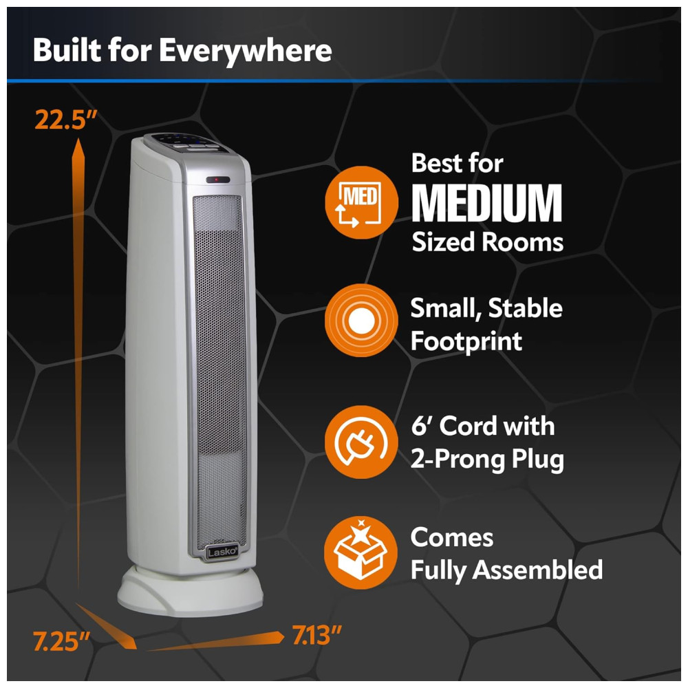 Conheça o Aquecedor de Torre Oscilante de Cerâmica Lasko para Casa com Proteção Contra Superaquecimento, Temporizador, 57,15 cm, Prateado, 1500W, 5775.