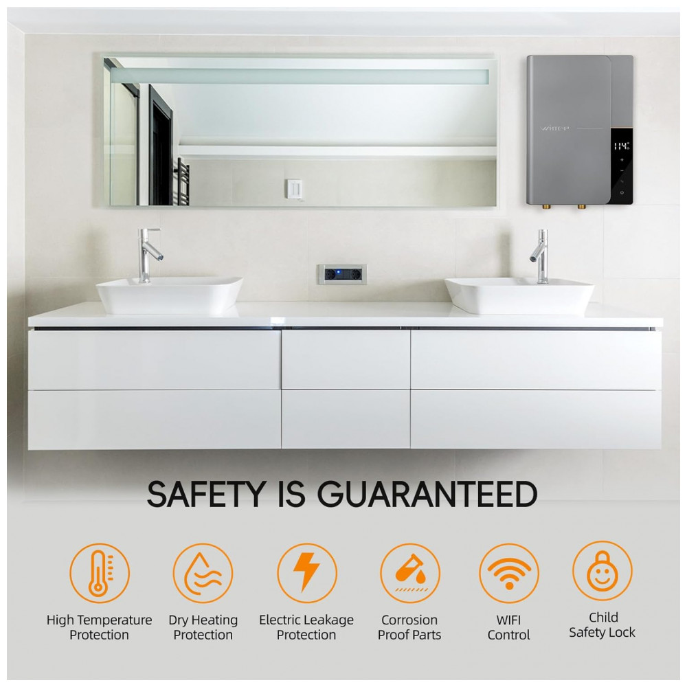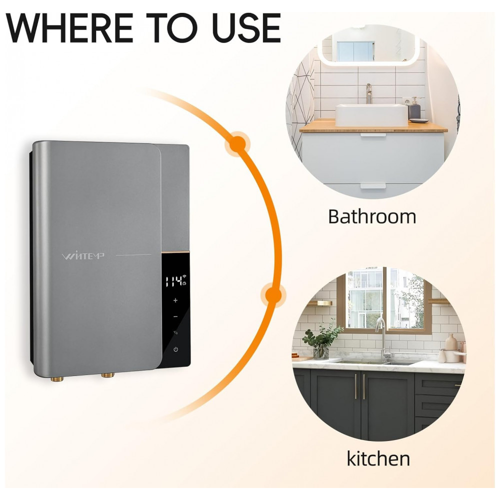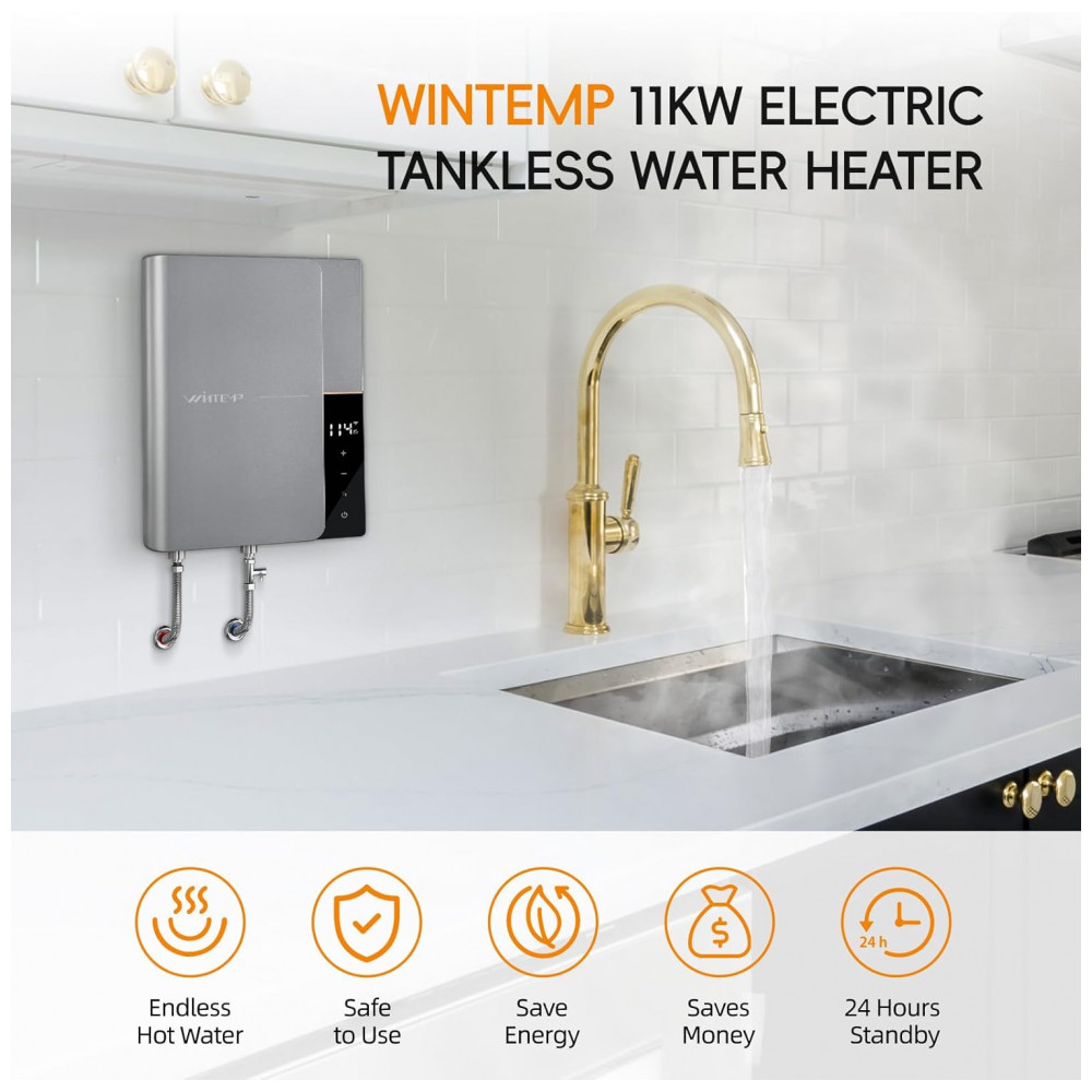 Aquecedor de Água Elétrico Tankless WINTEMP WN11 Cinza 11 kW 240V Display LED até 26 GPM