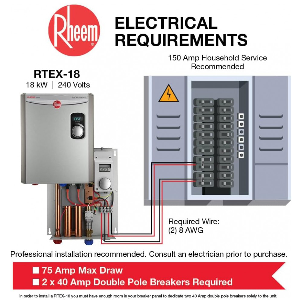 Aquecedor de Água Elétrico Tanque Zero Rheem RTEX-18 18kW 240V Cinza Modulação Automática e Vazão 167 L/min