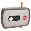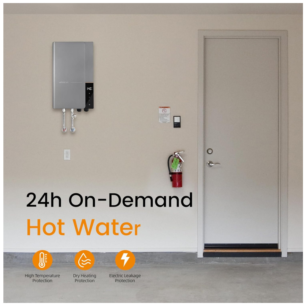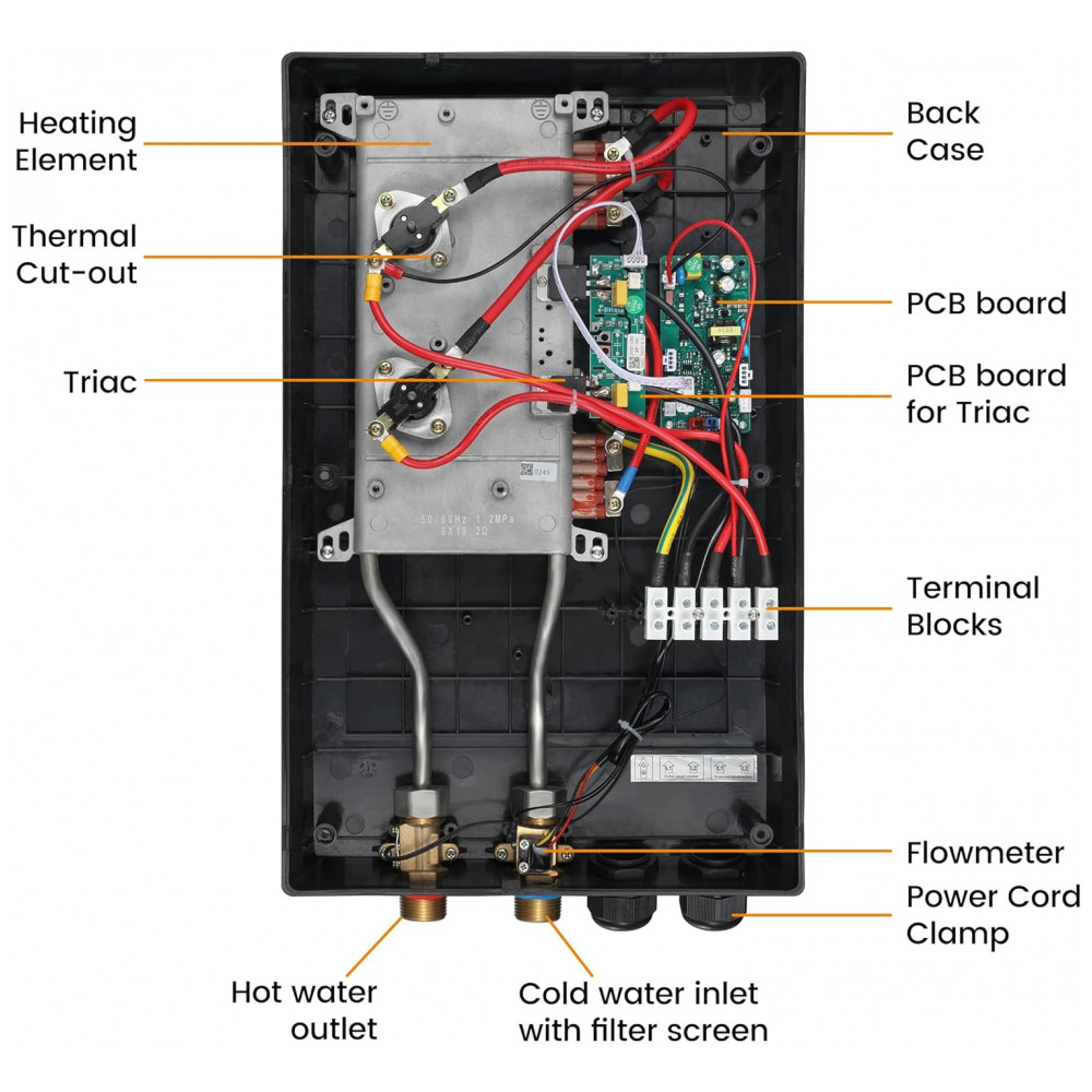 O equipamento é montado em parede, com estrutura compacta que ocupa cerca de 90% menos espaço em comparação com aquecedores de água convencionais com tanque, adequando‑se a depósitos, vãos de parede, entre paredes e outras áreas restritas. O corpo é construído em plástico de alta resistência (ABS), com componentes metálicos internos projetados para resistência térmica. A conexão hidráulica é de 19,05 mm (3/4″ NPT), compatível com padrão de tubulação residencial de água quente.