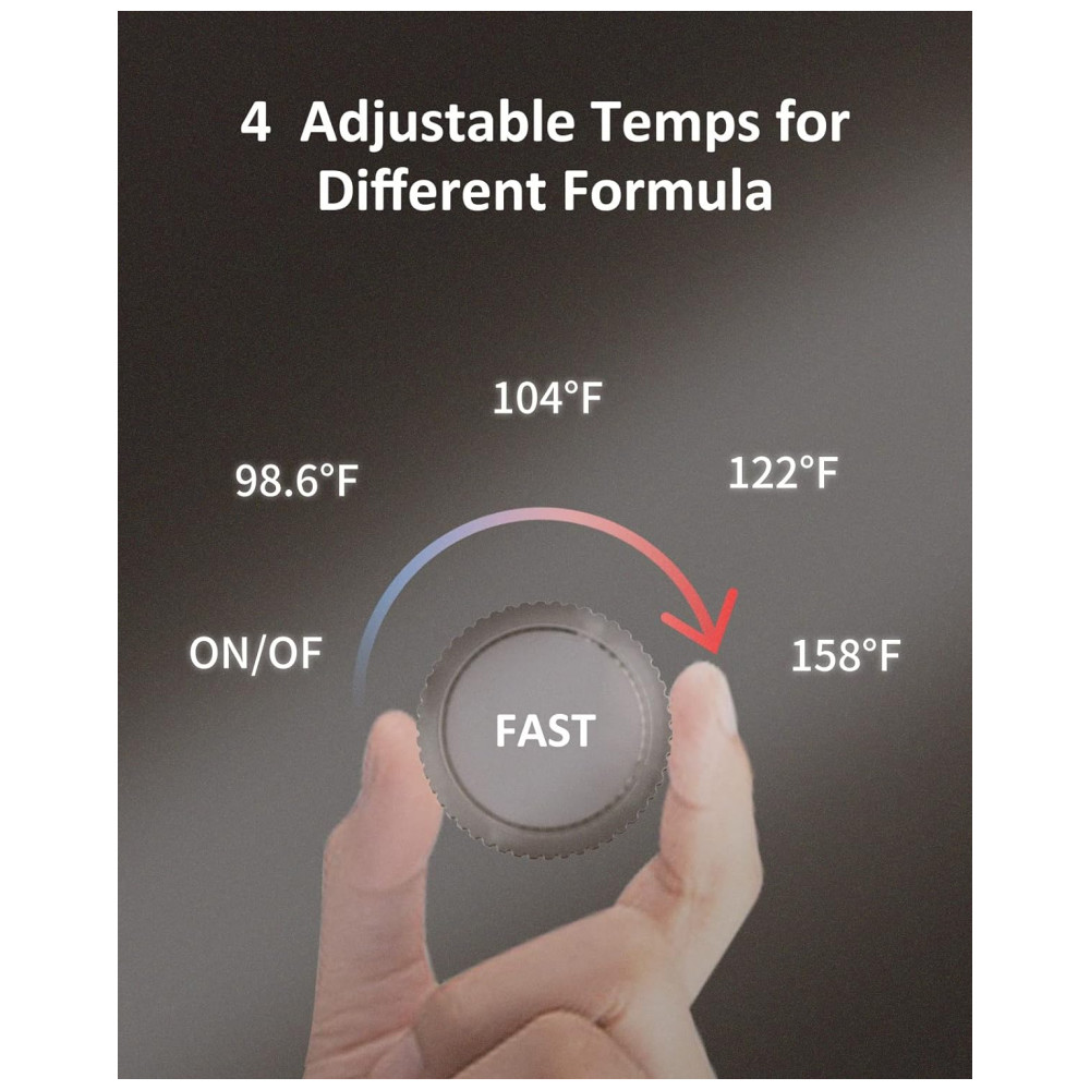 Sirva a garrafa com temperatura perfeita rapidamente em apenas 25 segundos. Basta dispensar, colher e misturar. Acalme um bebê gritando instantaneamente. Ele mantém a água na temperatura desejada por 72 horas, aguardando a temperatura corporal a qualquer momento. Mude a maneira tradicional de aquecer mamadeiras em água quente ou aquecedor de mamadeiras. 4 temperaturas: 37C 98,6F, 40C 104F, 50C 122F, 70C 158F, especialmente projetado para acomodar diferentes fórmulas e preferências do bebê. A temperatura ideal para alimentação com fórmula é a temperatura corporal de 37C 98,6F, uma vez que é igual ao leite materno fresco. Você também pode usá lo como dispensador de água potável nas configurações de 40C 104F e 50C 122F. Além disso, a temperatura da água pode chegar a 70C 158F, então você pode fazer chá e café quando o bebê crescer. A luz noturna acende durante a distribuição, conveniente para verificar a saída de água e evitar bagunça no meio da noite. A luz noturna suave conforta perfeitamente o bebê faminto e chorando, fazendo com que seu bebê desfrute de uma noite doce. Este aquecedor de água para fórmula para bebês é equipado com plástico de material resistente a altas temperaturas, sem BPA e 100 de qualidade alimentar, sem cheiro de plástico, sem substâncias prejudiciais, anti vazamento, não tóxico e para consumo pelo bebê, mais saudável que outros. O aquecedor de alta potência de 400 W torna a fabricação de garrafas mais rápida do que outras. O tanque de água deste fabricante de fórmulas pode ser facilmente removido da base para limpeza. É leve e pequeno e não ocupa espaço. O tamanho é compatível com todas as marcas e tipos de garrafas