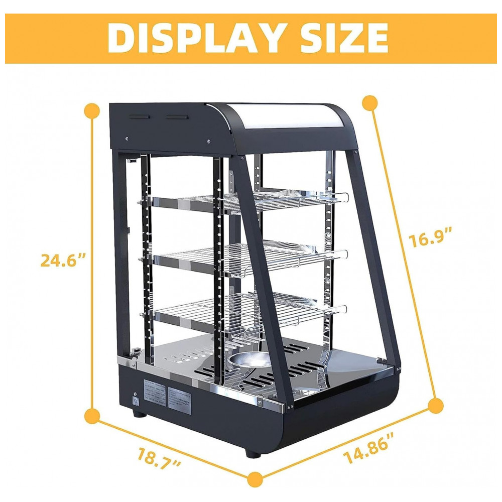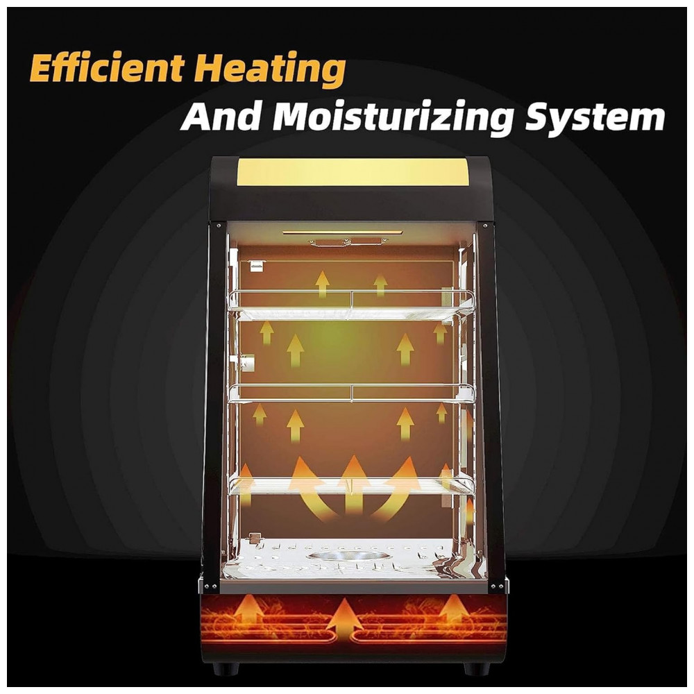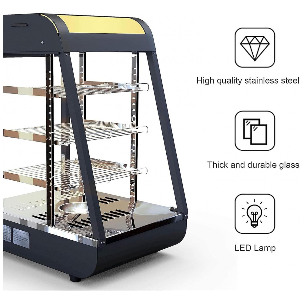 Aquecedor de Alimentos 2 Andares Commercial Preto Aço Inoxidável Vidro Curvo 55x38x38 cm 110V 800W para Restaurantes e Buffet Anpuce