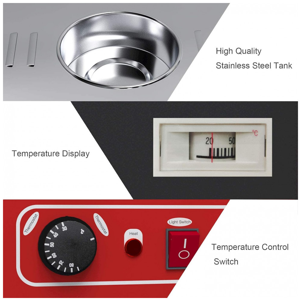 Versátil para catering e buffets, o design inclui tampa de vidro e manual de instruções para instalação rápida em redes 110V.