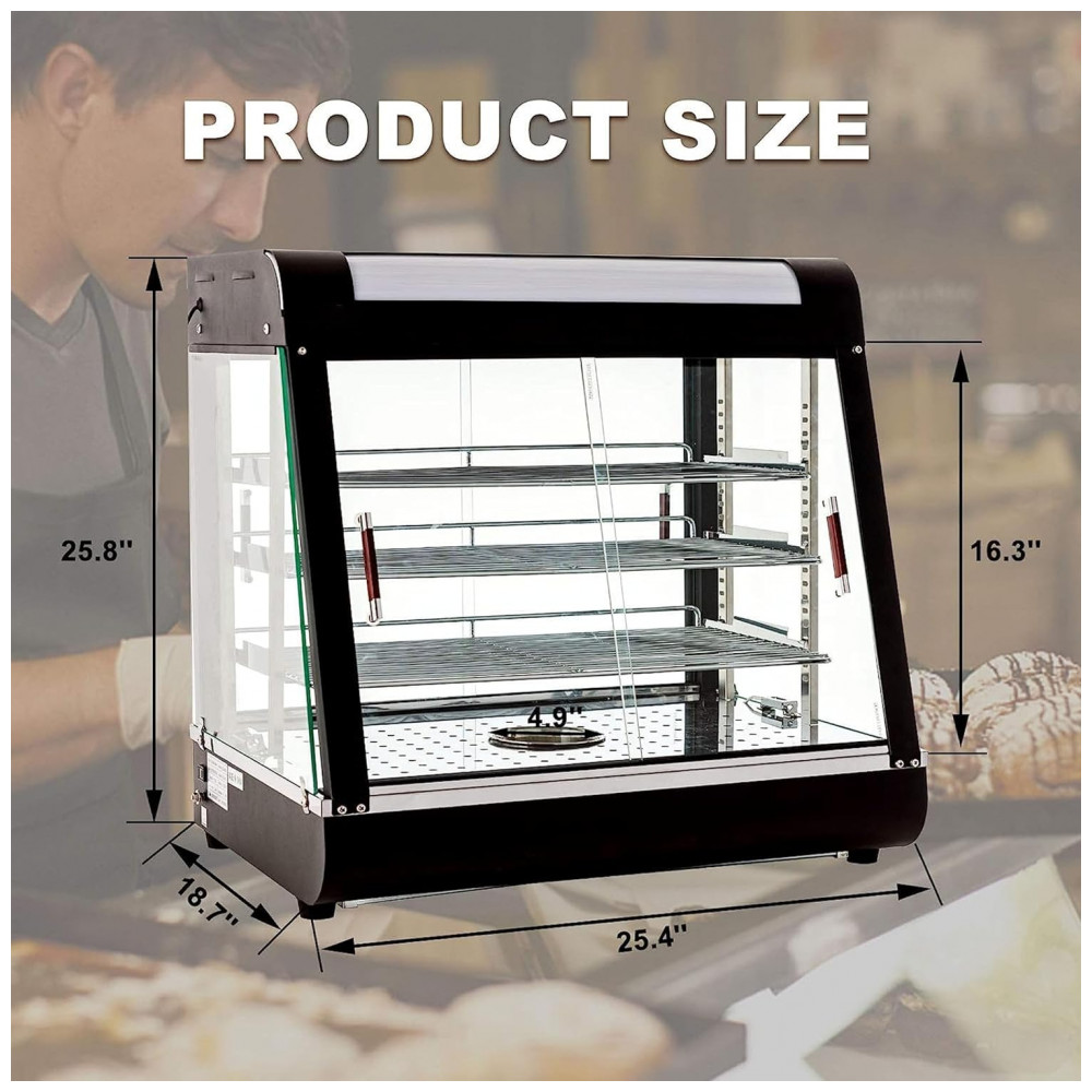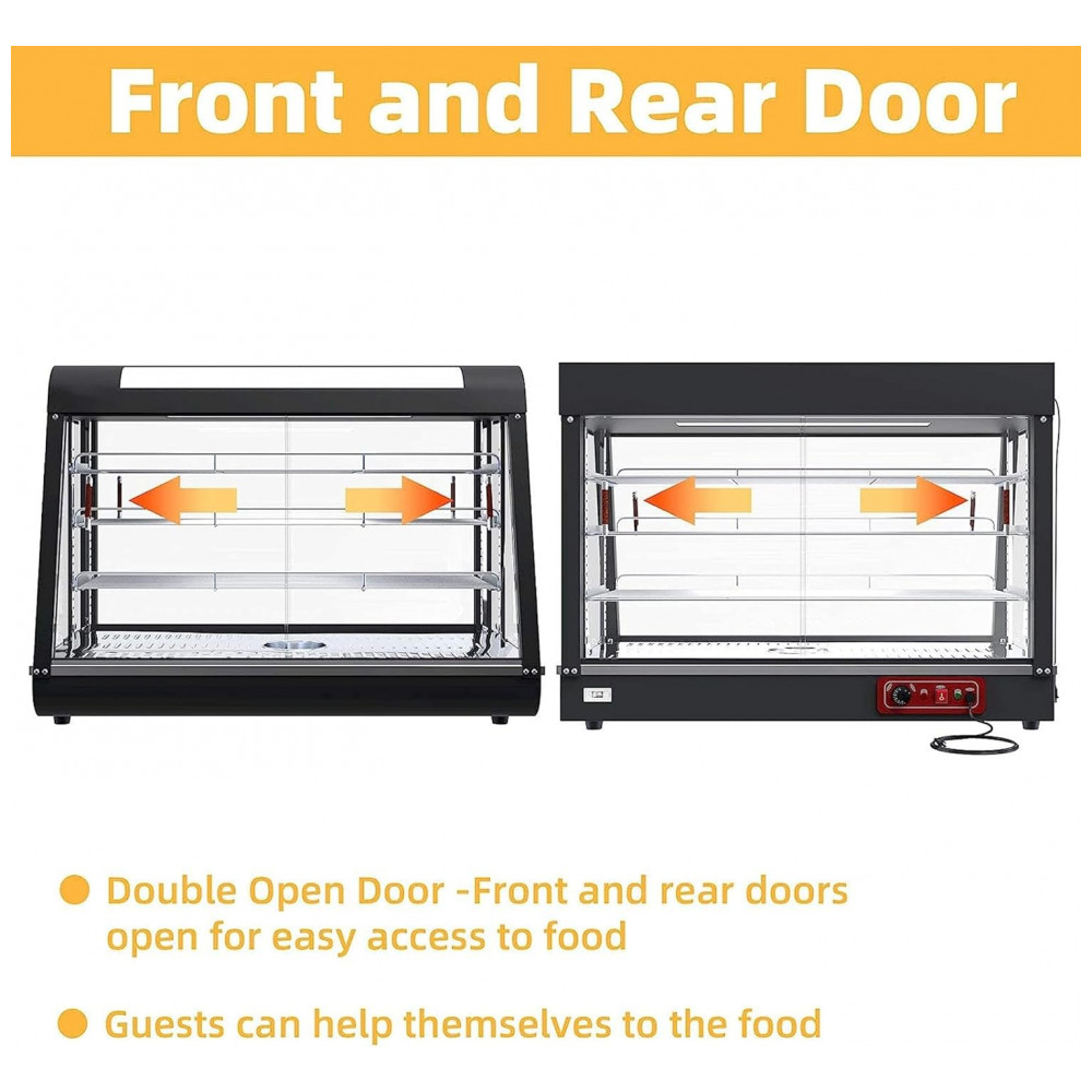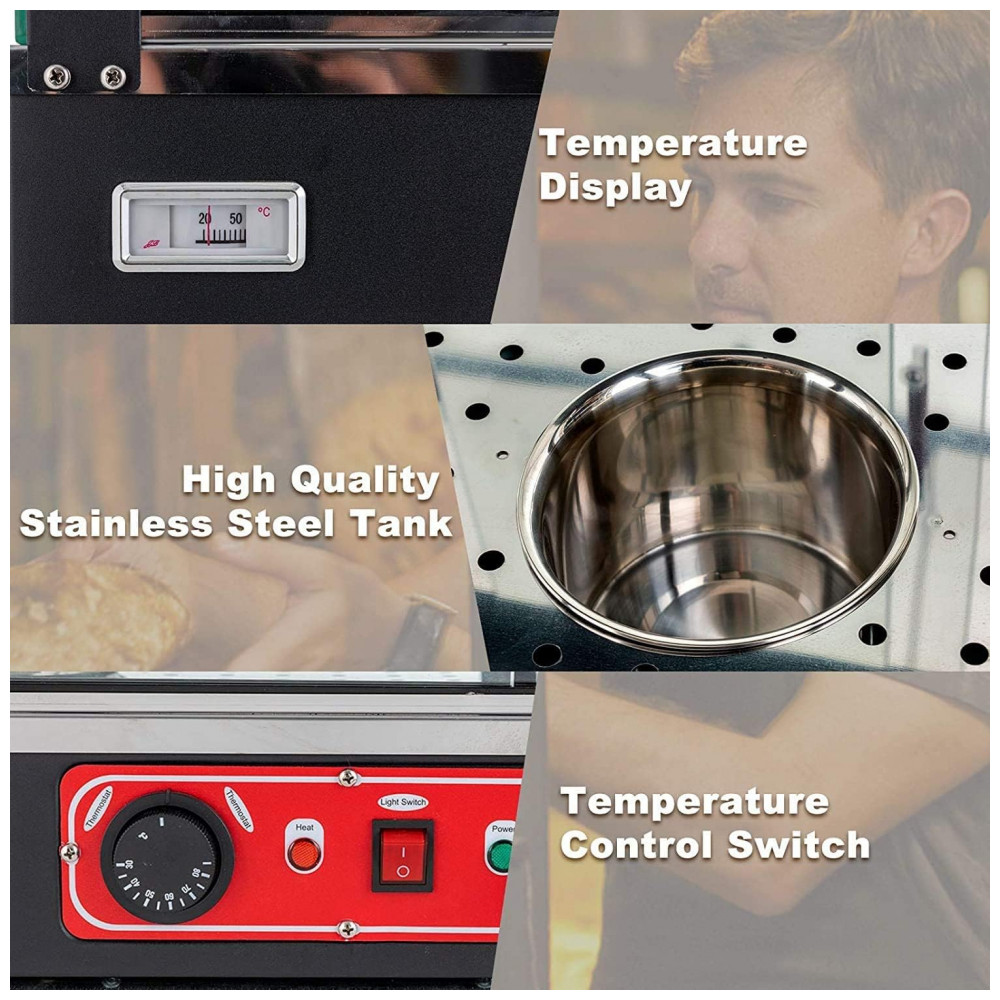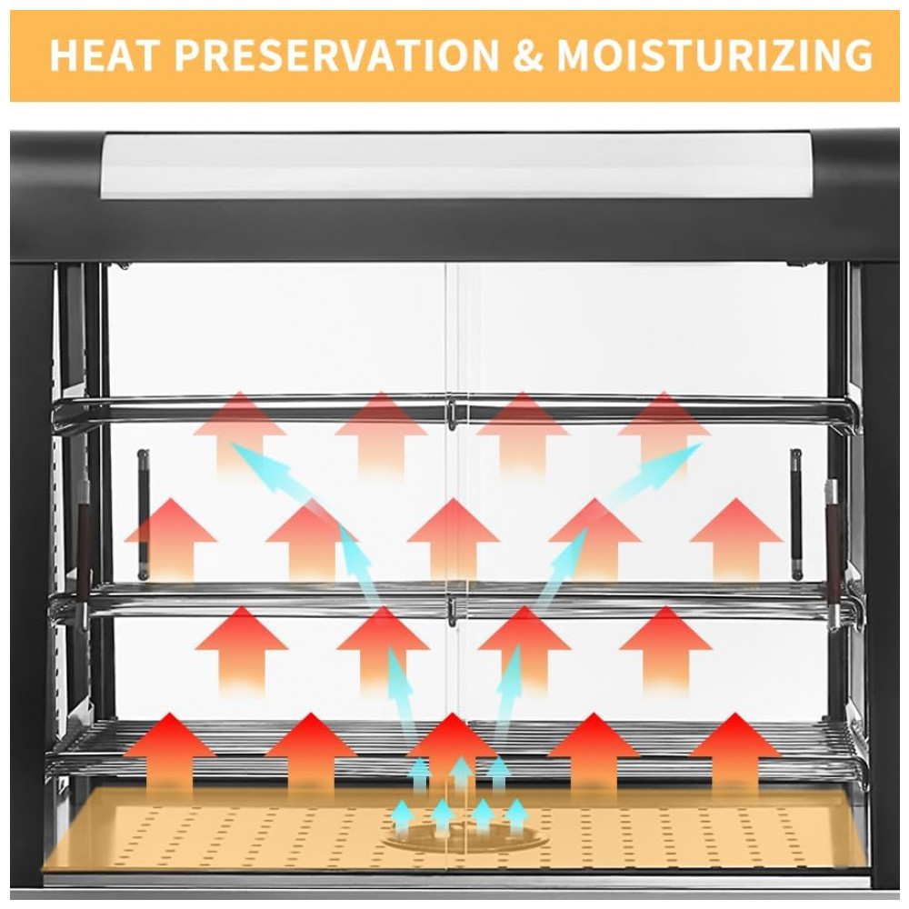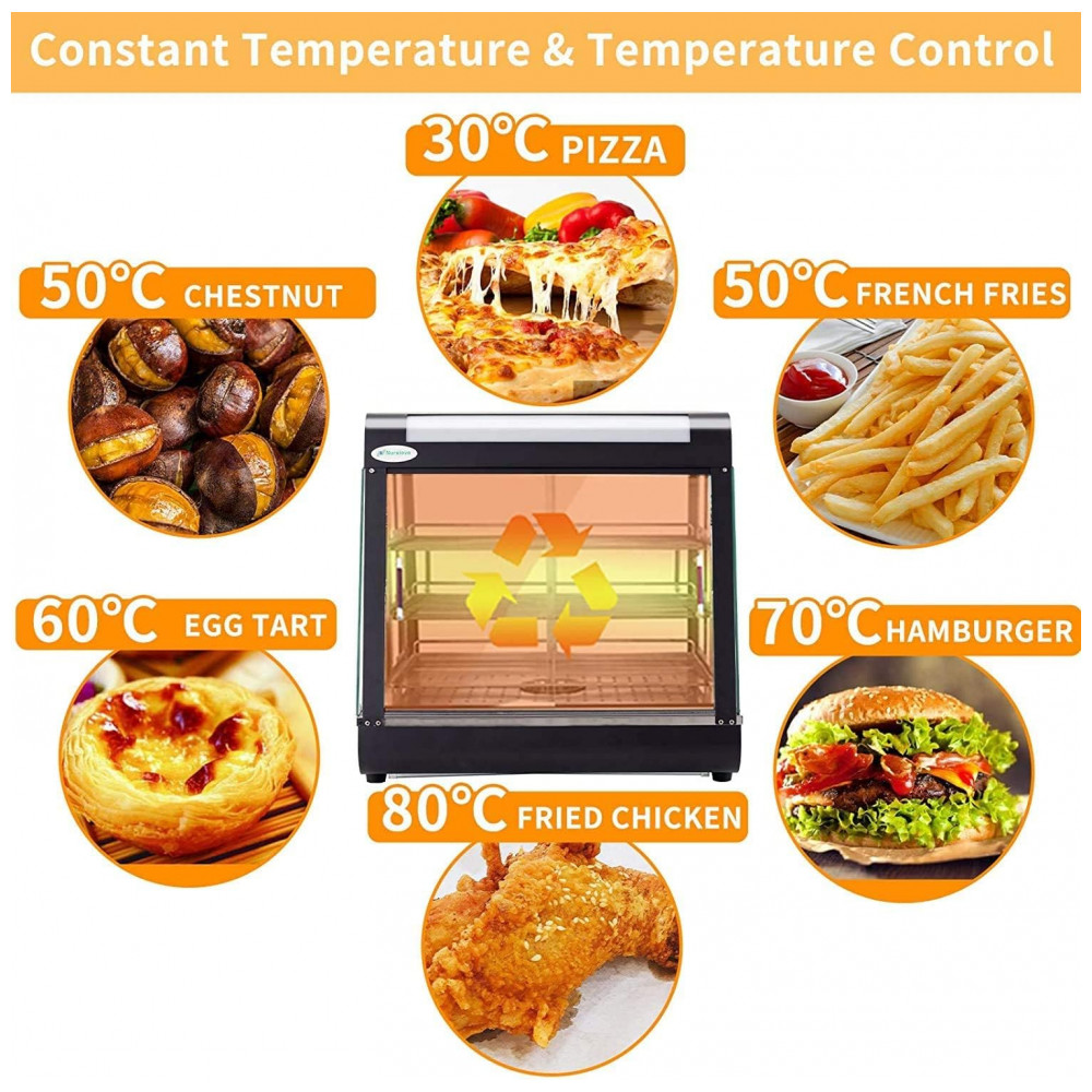 Aquecedor de Alimentos 3 Andares Anpuce Preto Aço Inoxidável Interruptor Luz Independente Termostato 66 cm 110V 1200W para Buffet Restaurantes