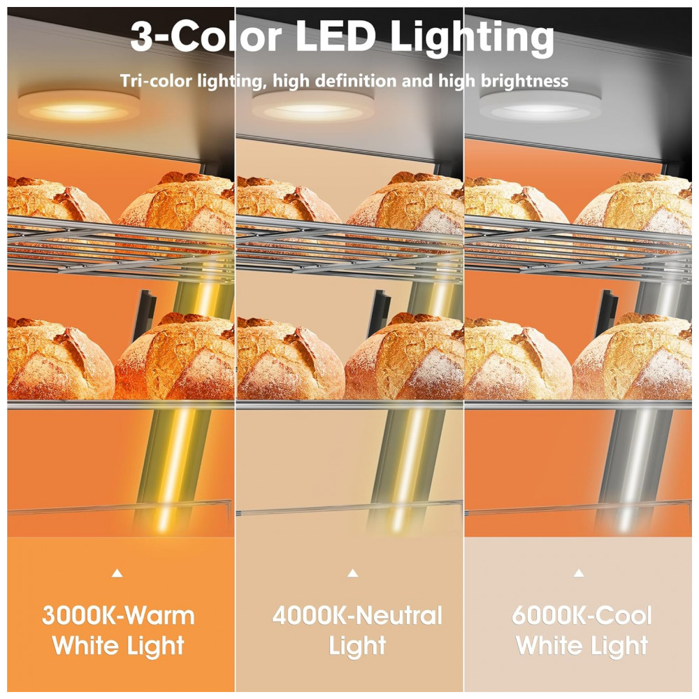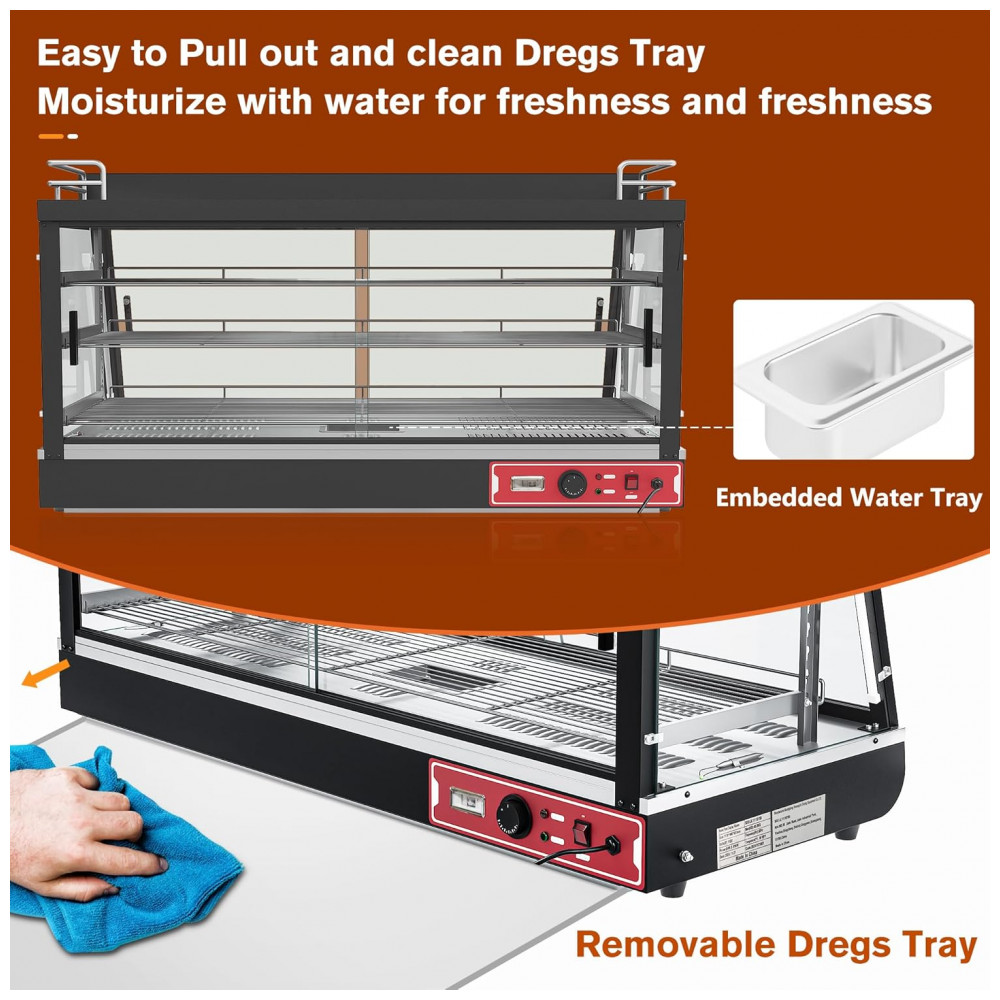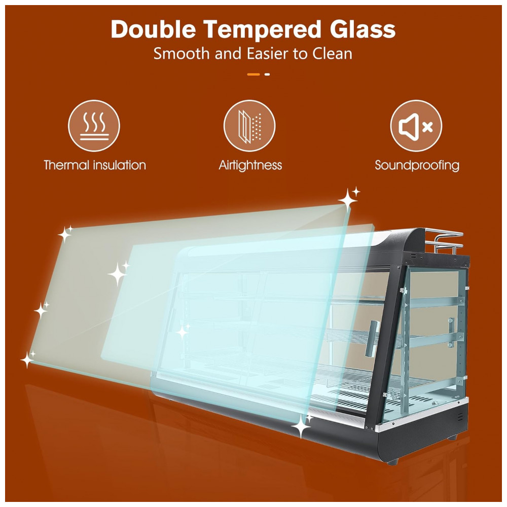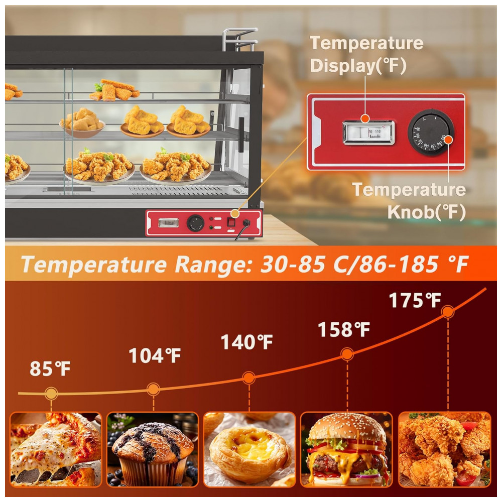 Aquecedor de Alimentos Countertop Whalefall Preto Suporte Superior Iluminação Tri-Cor Termostato Ajustável 112 cm para Cafeterias Restaurantes