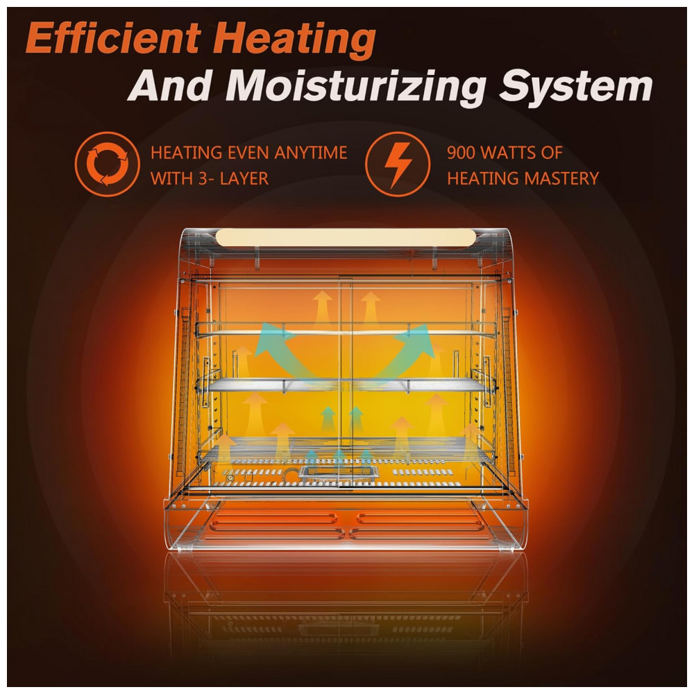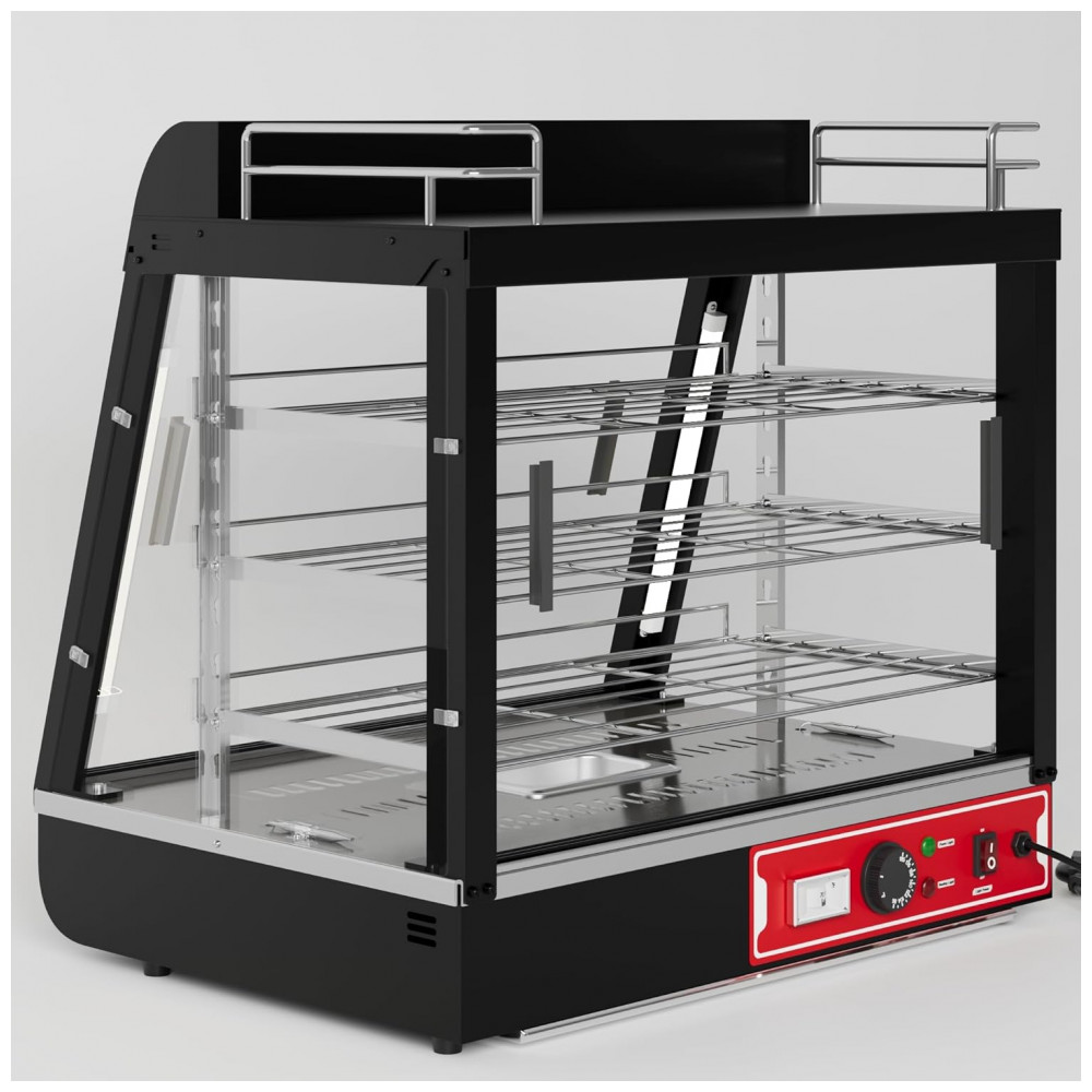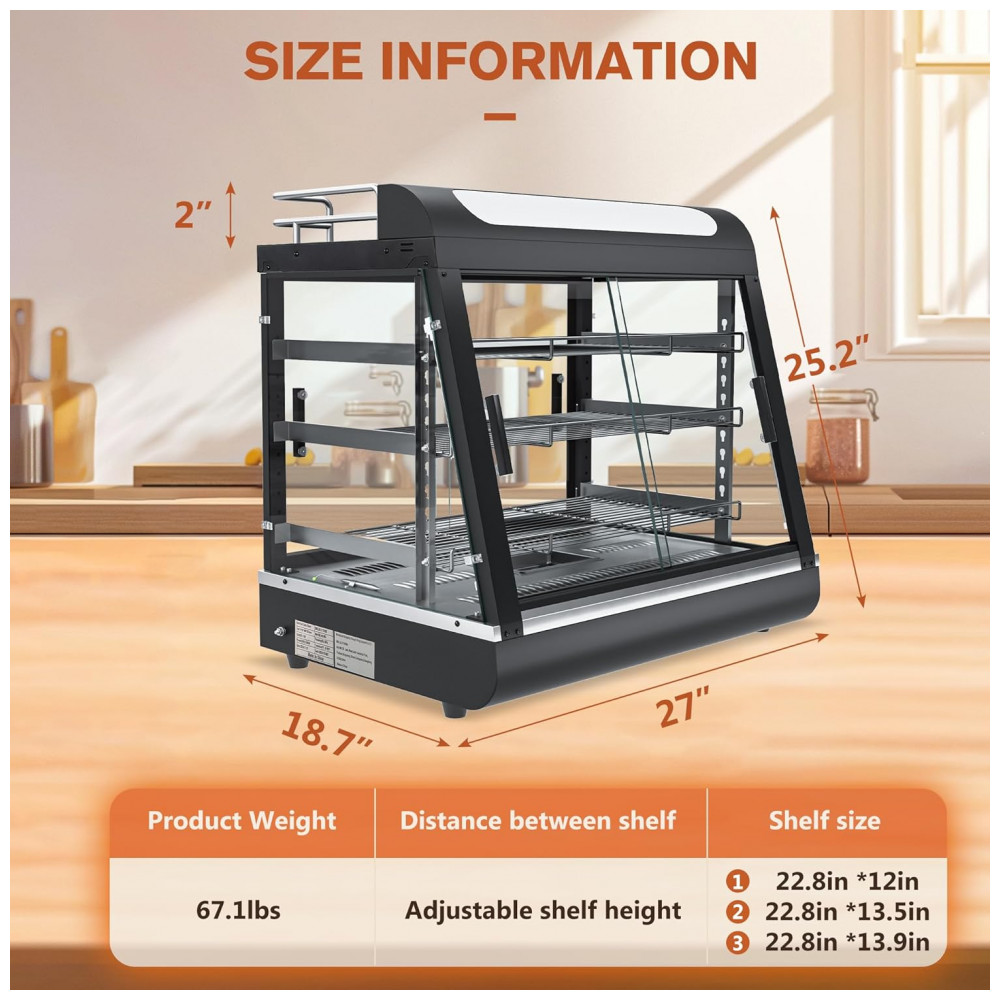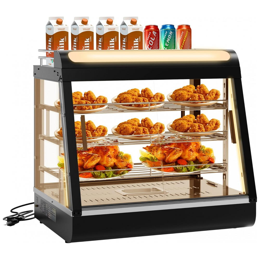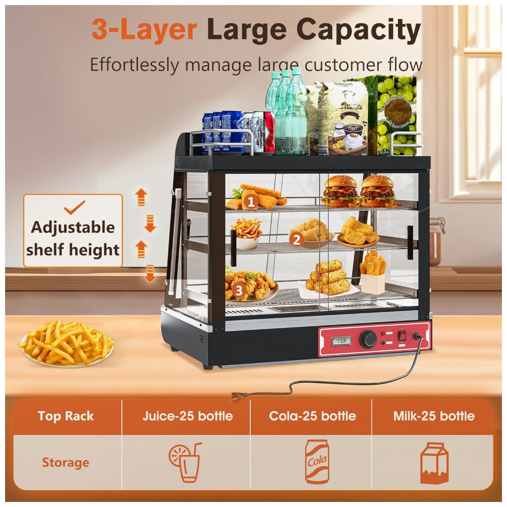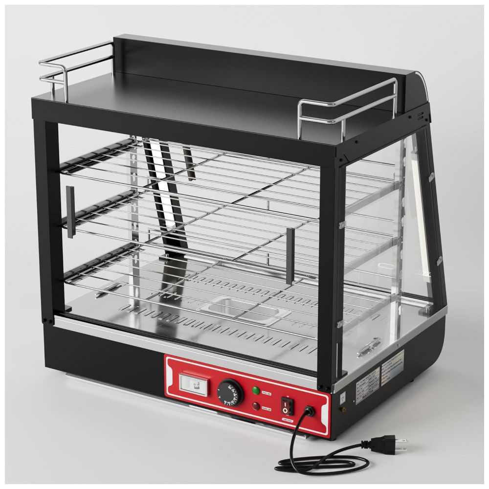 Aquecedor de Alimentos Countertop Whalefall Preto Suporte Superior Iluminação Tri-Cor Termostato Ajustável 69 cm 110V 1200W para Cafeterias
