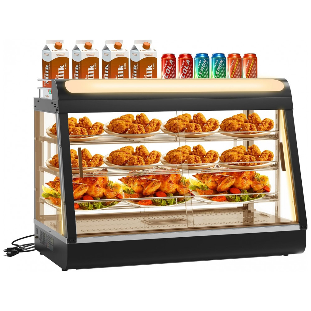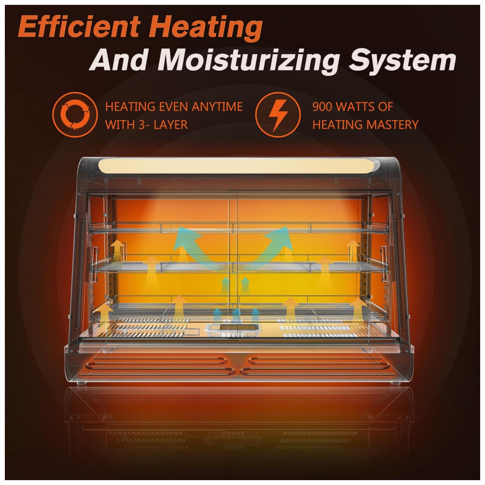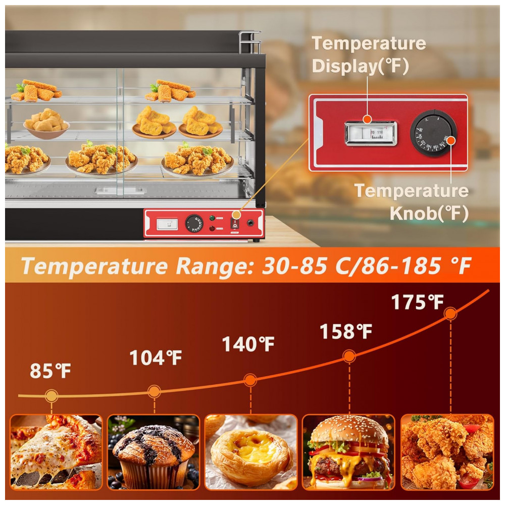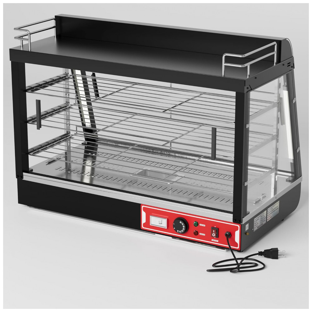 Aquecedor de Alimentos Countertop Whalefall Preto Suporte Superior Iluminação Tri-Cor Termostato Ajustável 89 cm 110V 1500W para Restaurantes