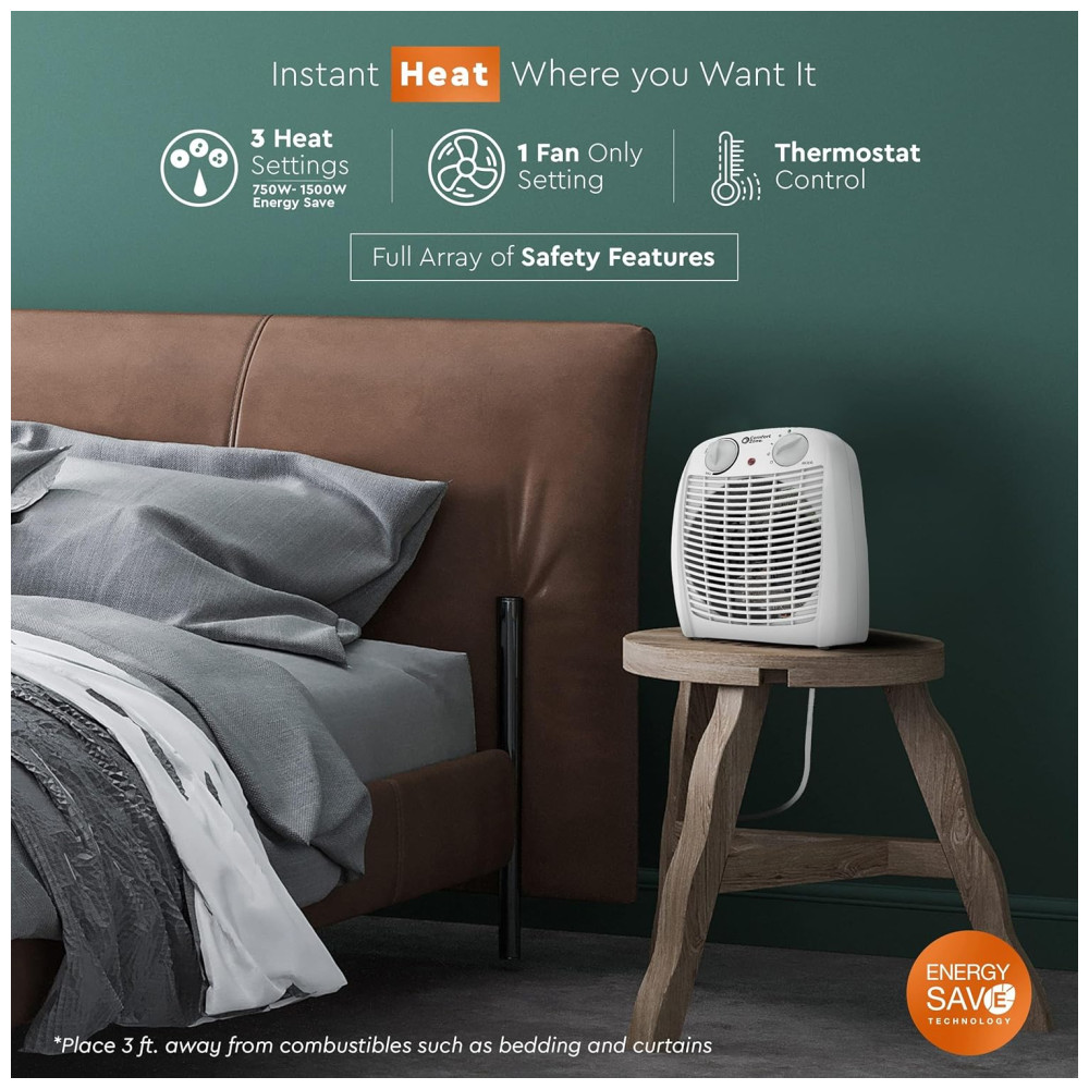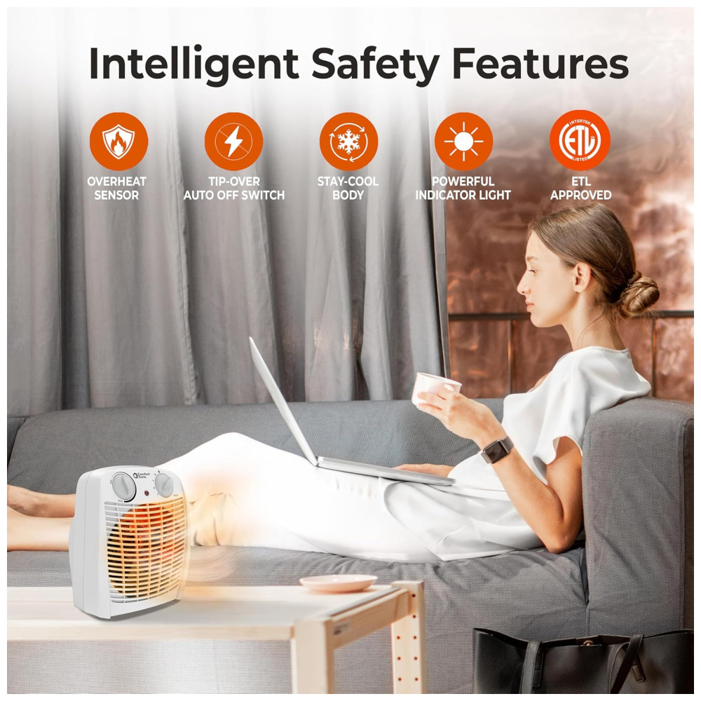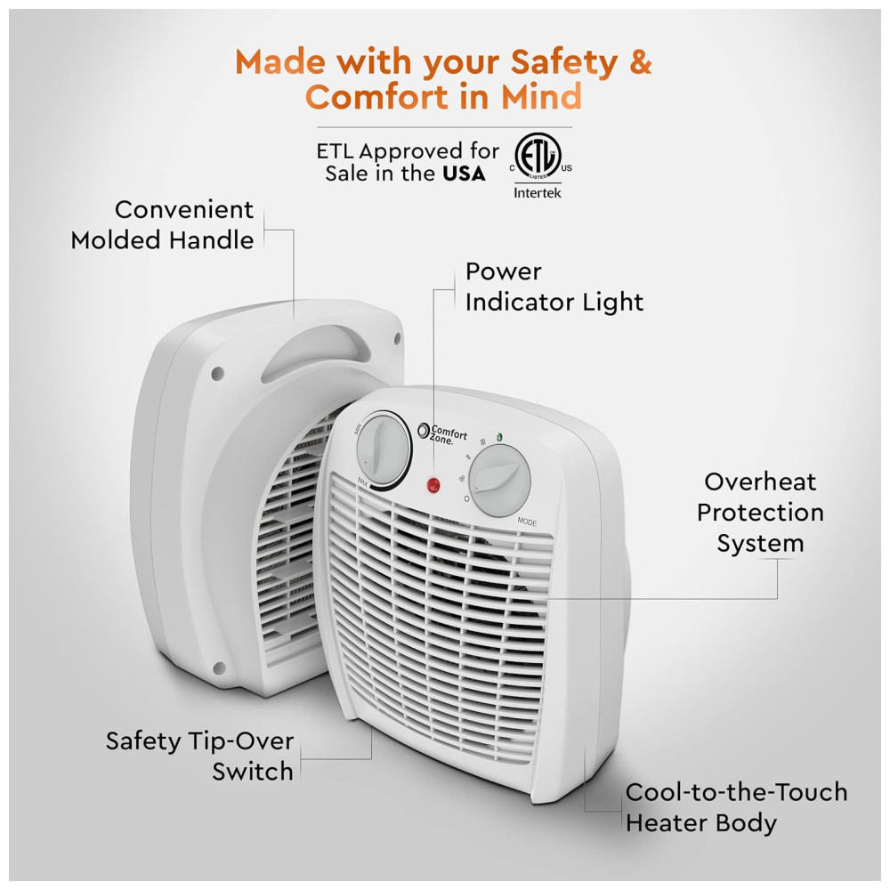 Aquecedor de Ambiente Comfort Zone com Termostato Proteção Contra Superaquecimento Compacto e Eficiente para Casa e Escritório