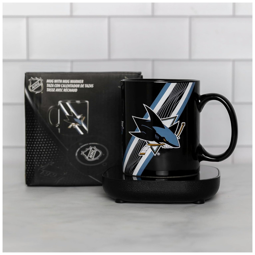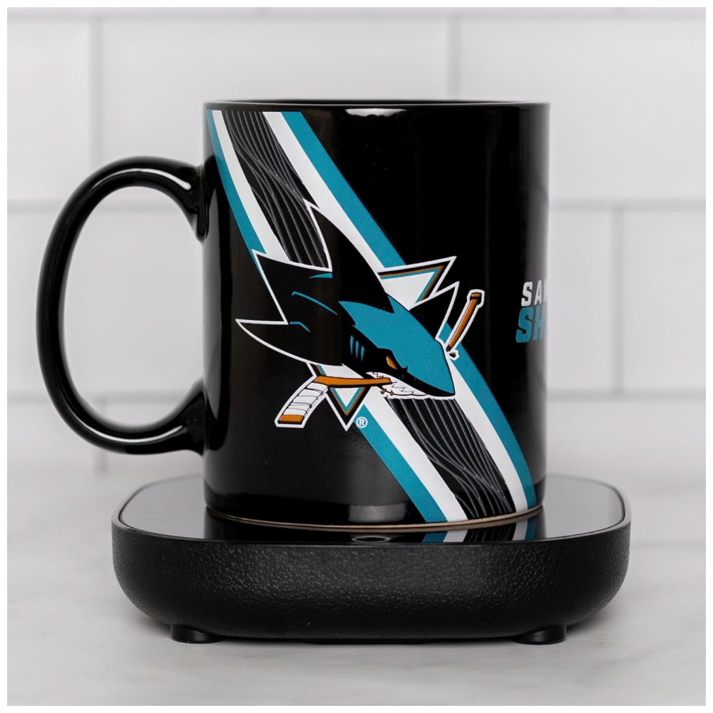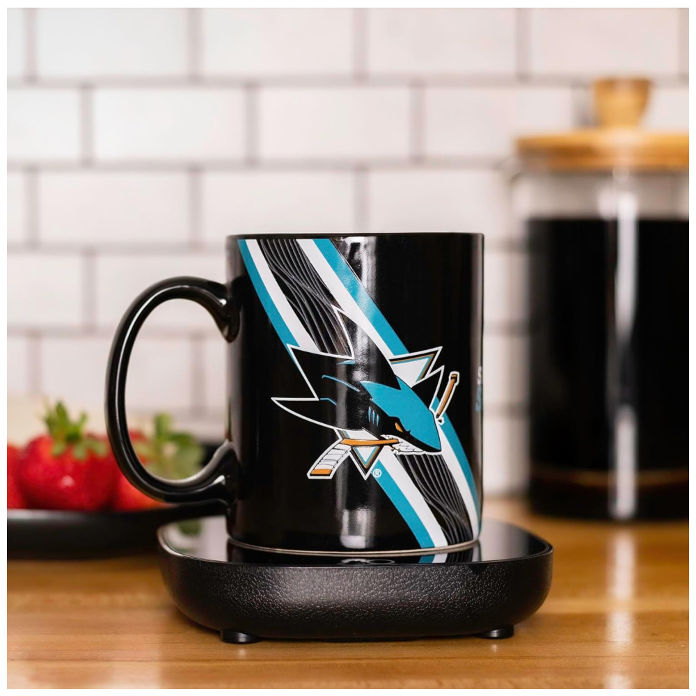 Aquecedor de Caneca Tema San Jose Sharks com Desligamento Automático Inclui Caneca 16W Uncanny Brands Preta e Azul